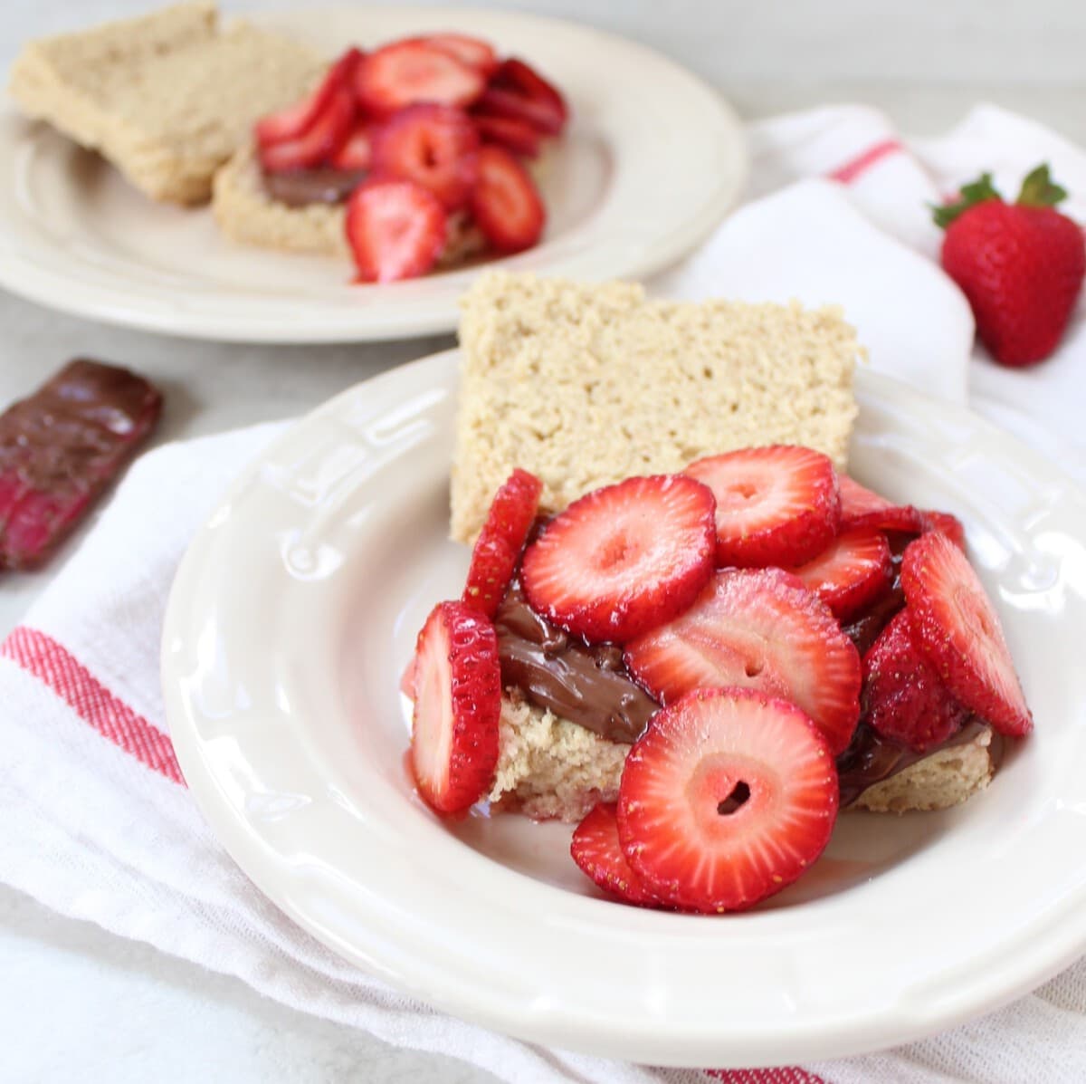 - Place the strawberries on top of the Nutella, then top with the other half of the shortbread.