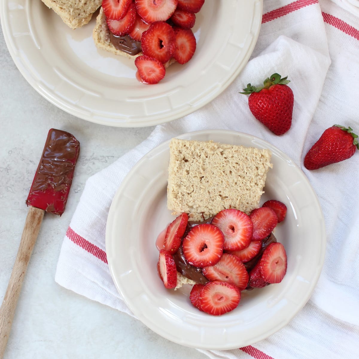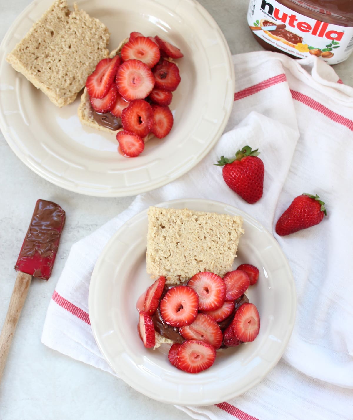 Instead of filling the shortcakes with whipped cream, I subbed in Nutella… because let me remind you folks, everything is better with Nutella! My famous Nutella Chocolate Chip Cookies, Nutella Buddies & Gluten Free Nutella Brownie Skillet are living proof!