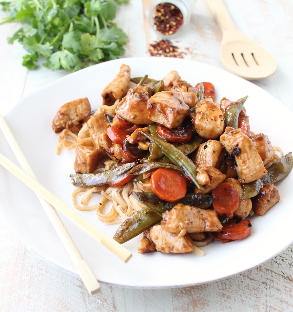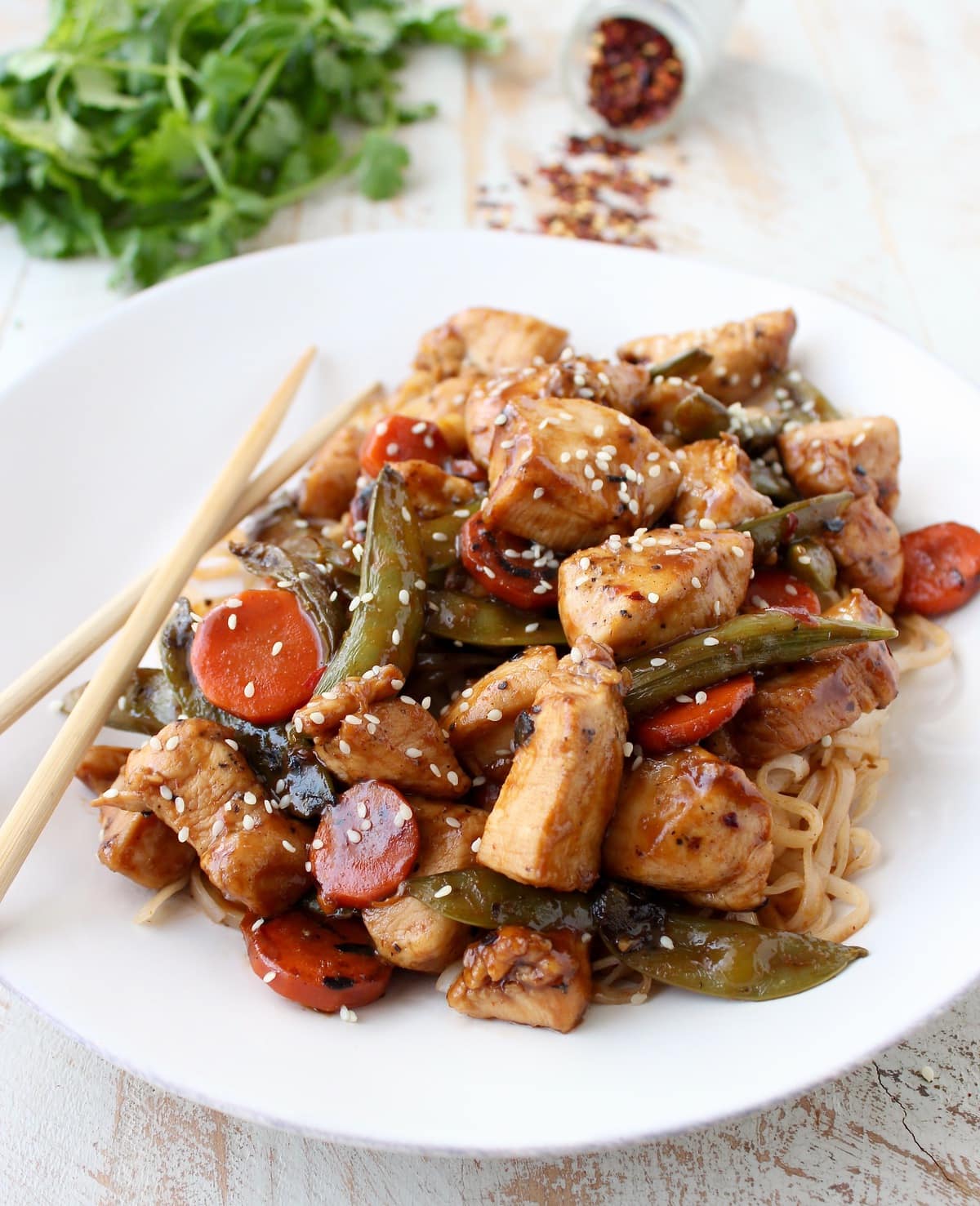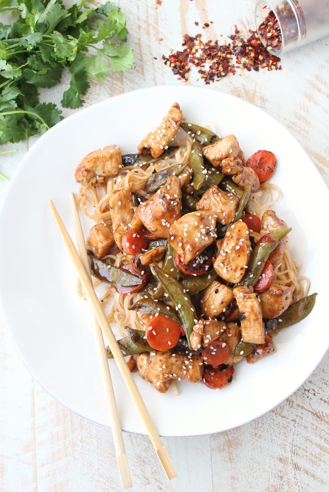 This dish is tossed together in only 20 minutes, in one large skillet or wok, for a weeknight dinner that you’ll make week after week! Or maybe twice in one week because you’re totally obsessed with it, like me! 😉