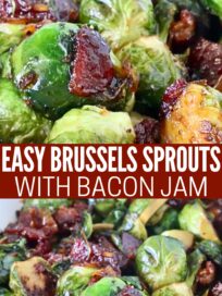Sweet, savory, and caramelized to perfection, these Bacon Jam Brussels Sprouts are an easy stovetop recipe that turns a classic veggie into a crowd-pleasing side dish!