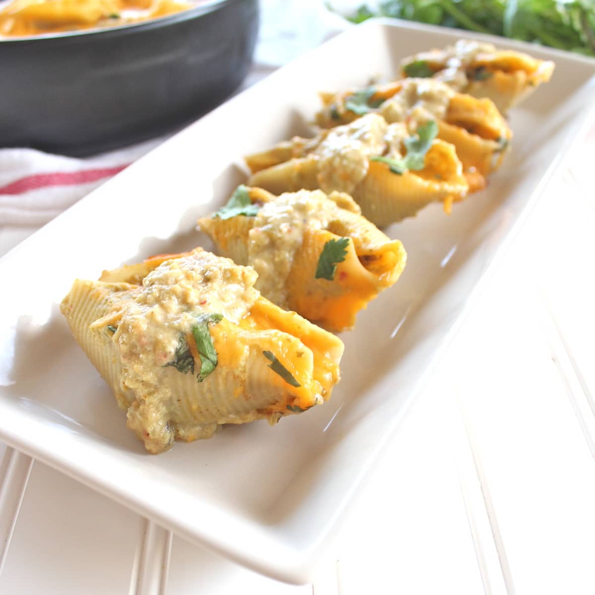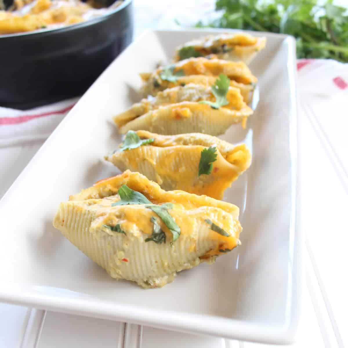 Baked Mexican Stuffed Shells with Creamy Green Chili Sauce