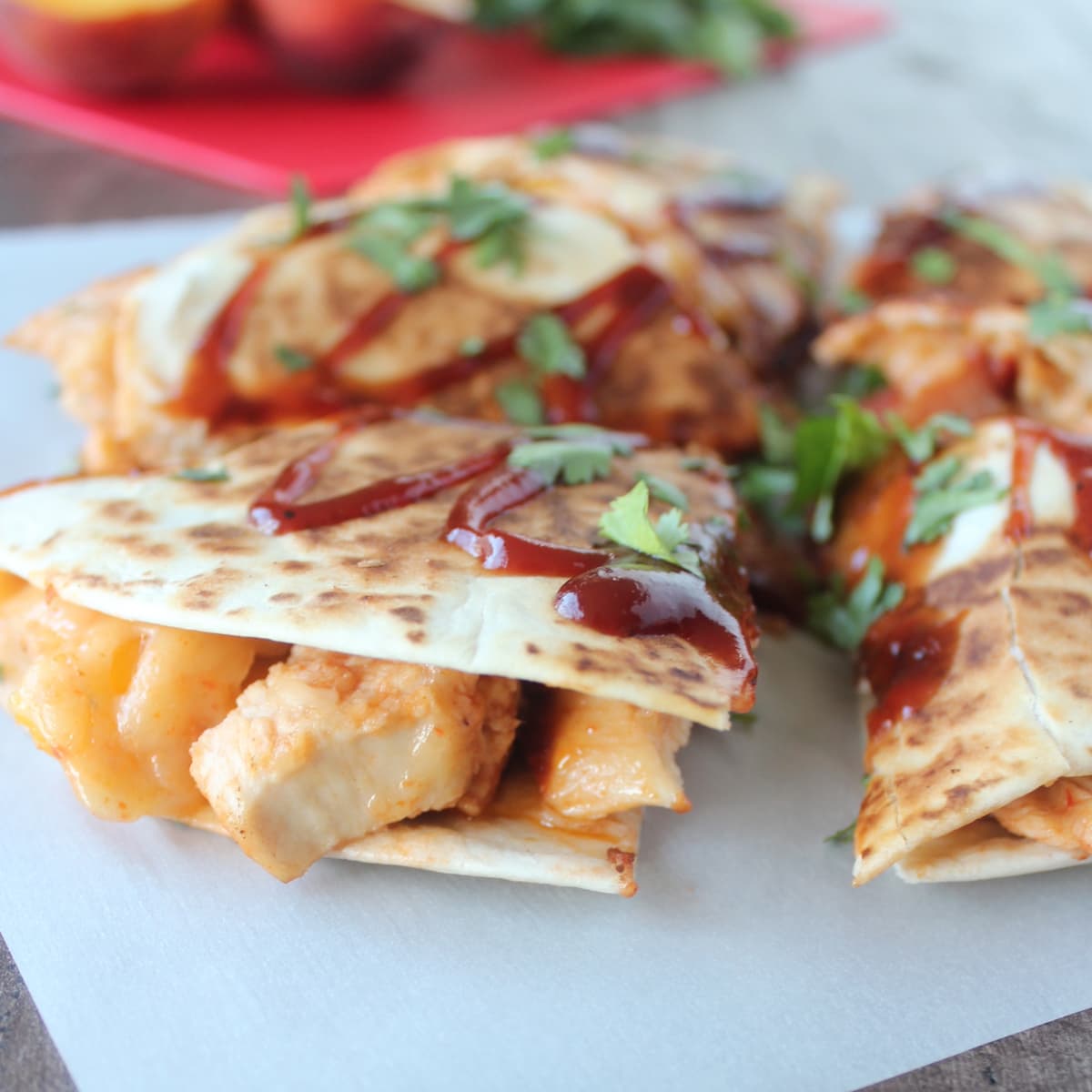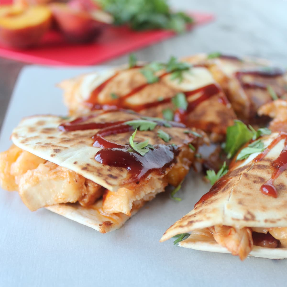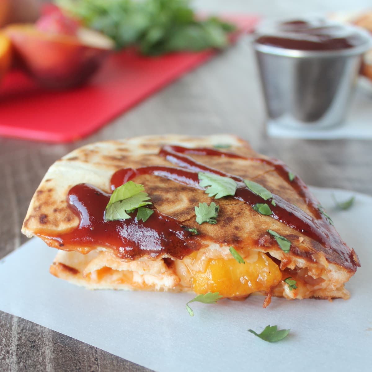 BBQ Chicken Peach Bacon Cheddar Quesadilla