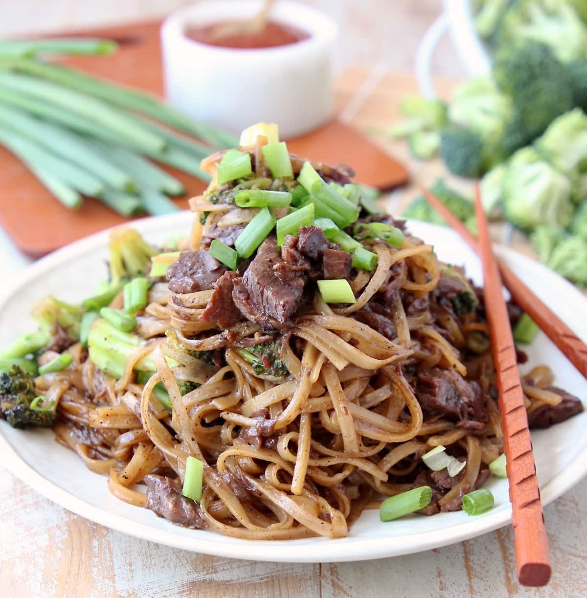 The best black pepper beef and broccoli recipe is made in a crockpot with a delicious Chinese black pepper sauce, then tossed with noodles for a simple slow cooker meal that only takes 10 minutes of prep time!
