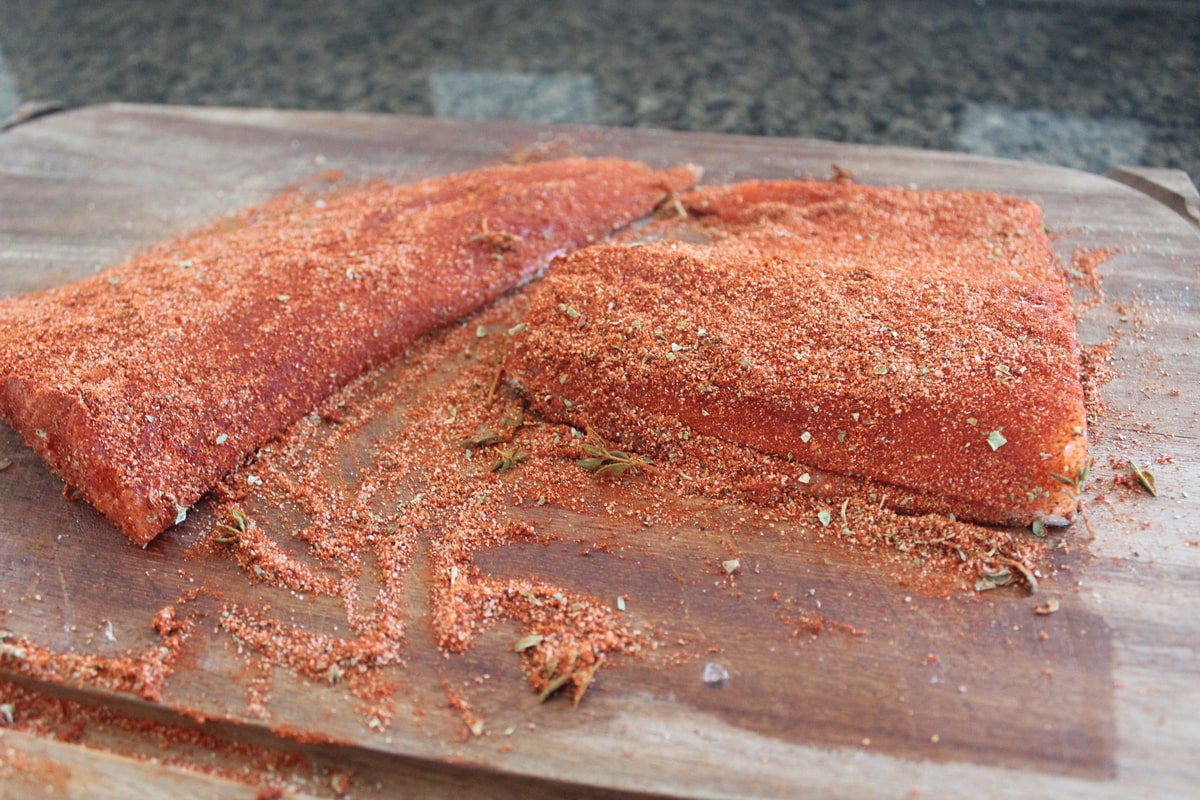- Combine the first 8 blackened salmon ingredients together in a small bowl.