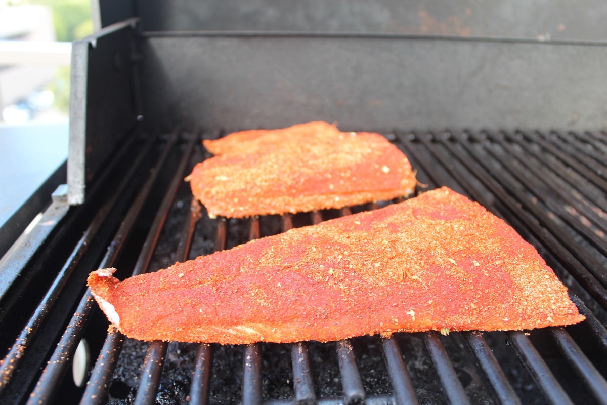 - Place the salmon, skin side down on the grill for 6-8 minutes.