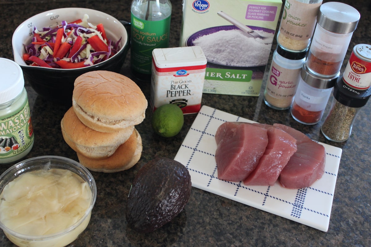 The week started with Mango Avocado Ahi Fillo Baskets, then went on to Spicy Tuna Crispy Rice Cakes and now for the delicious soy marinated, blackened ahi burger!