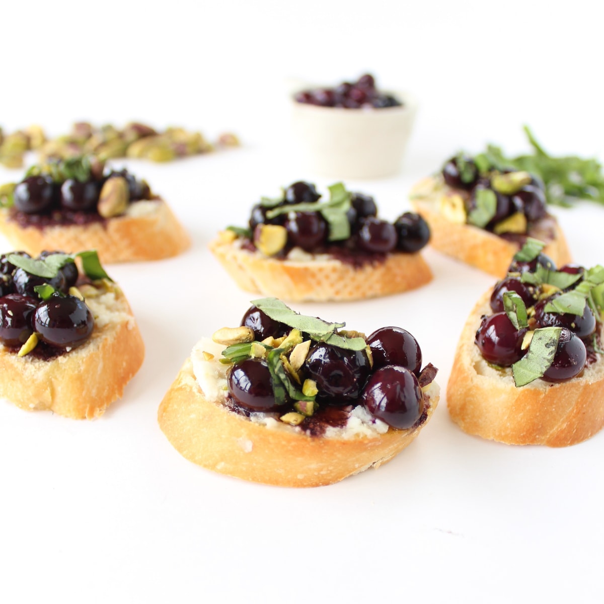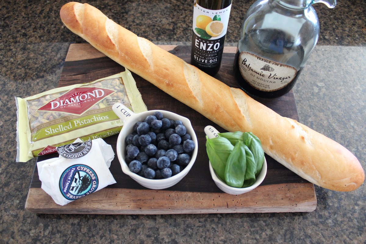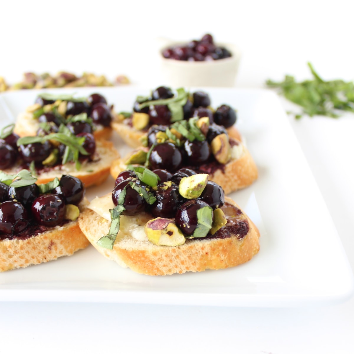 Balsamic blueberries, creamy goat cheese, crushed pistachios and fresh basil are combined in this delicious goat cheese crostini recipe!