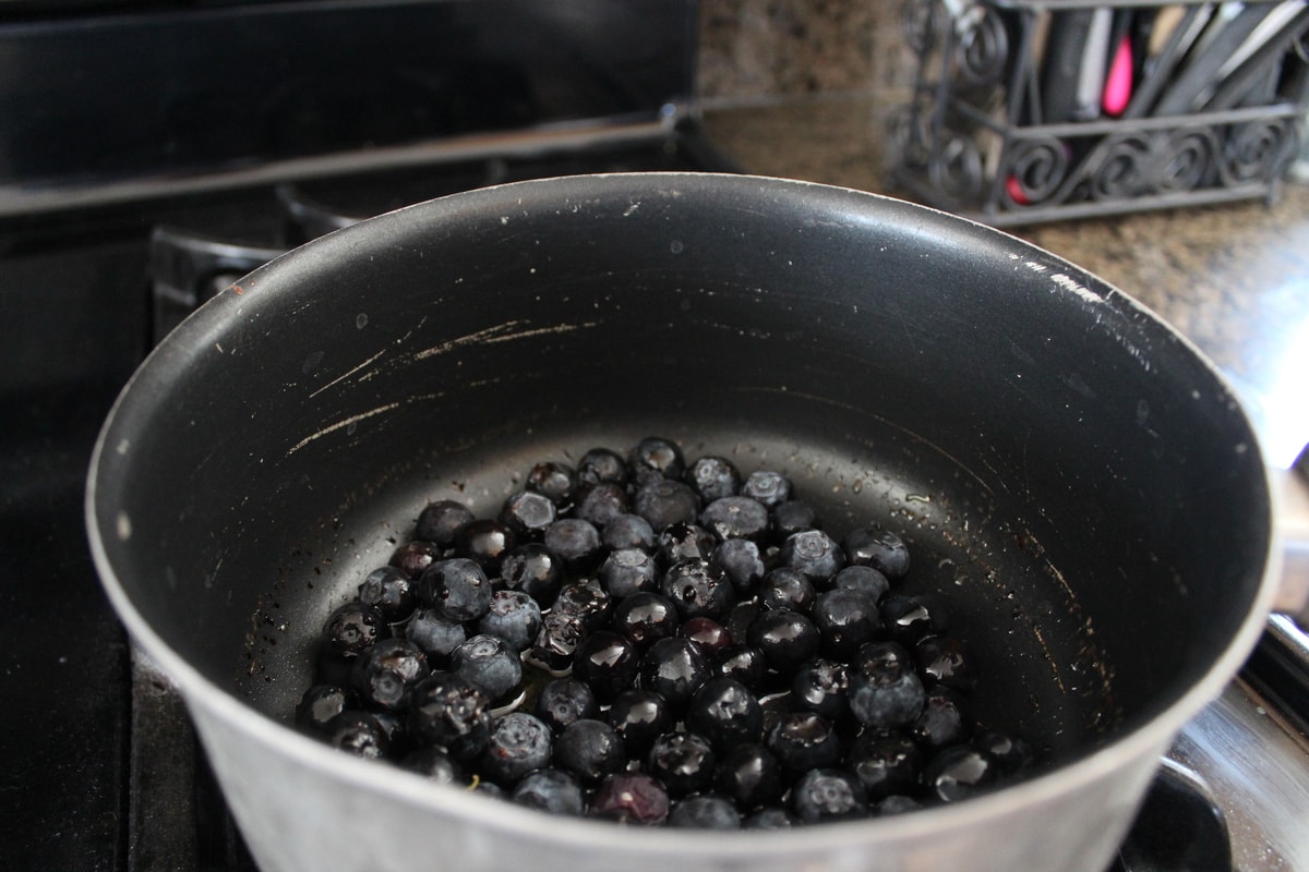 Add the blueberries to a saucepan over medium heat. Pour the balsamic vinegar and olive oil over the berries.