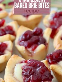 There’s nothing better than warm, creamy brie cheese, nestled in a pillow of buttery crescent roll dough, topped with sweet, tart cranberry sauce. It really is the ultimate 3 ingredient appetizer recipe!