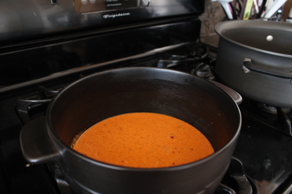 - To prepare the alfredo sauce, add the butter to a large pot over medium-high heat.