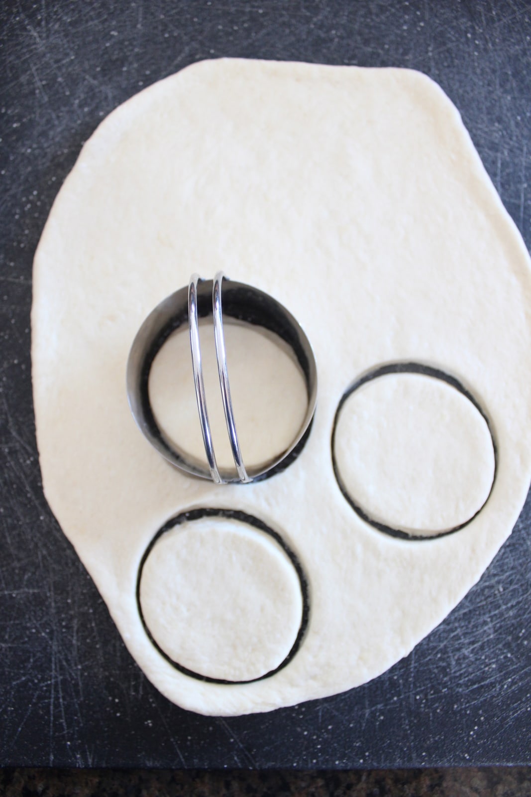 - Use a 3” pastry cutter to cut circles in the dough.