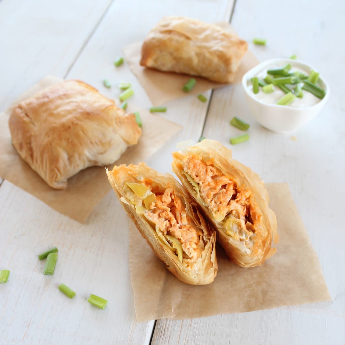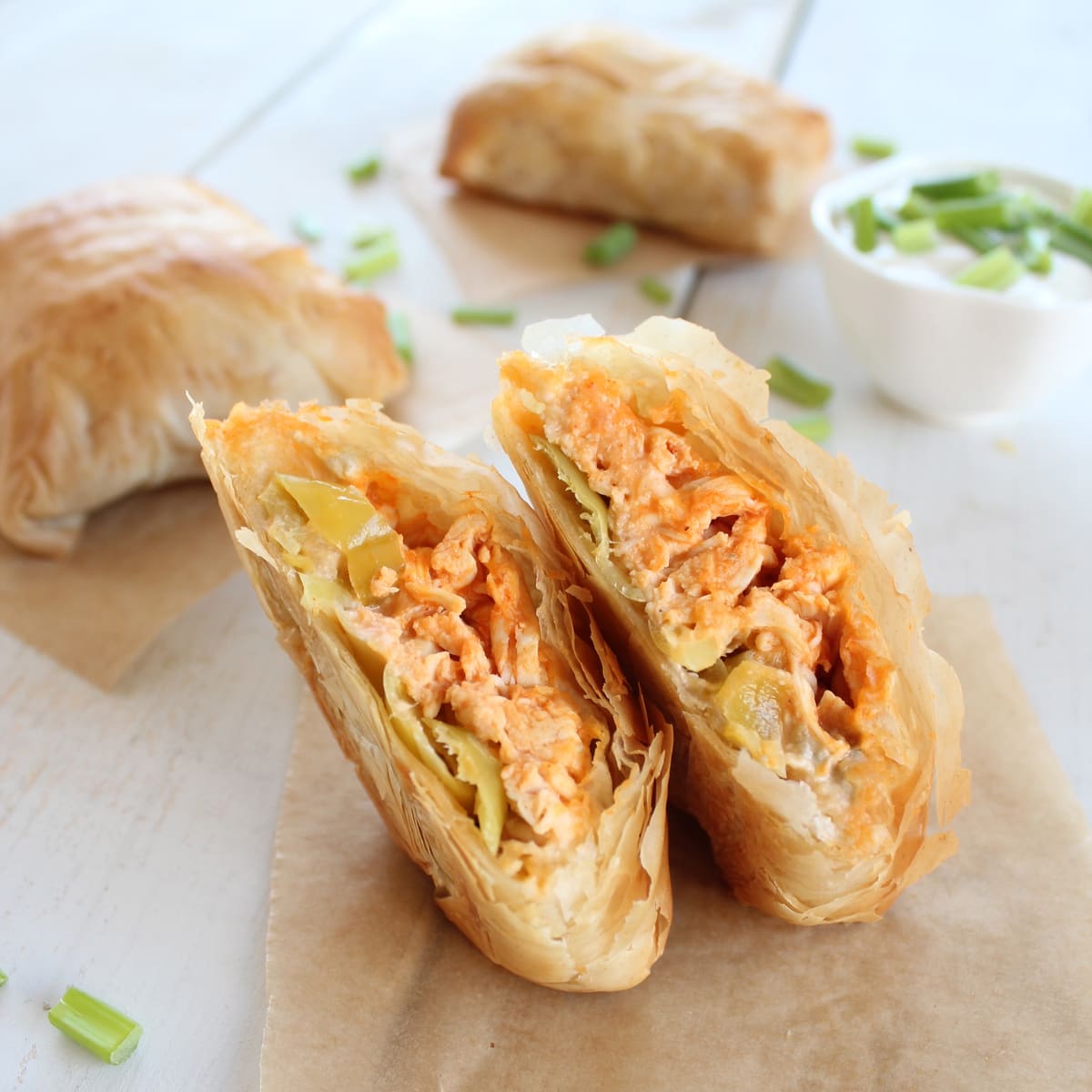 This was delicious. Instead of layering the fillings, I just mixed it all together in the buffalo chicken. I also cut the phyllo in quarters, making them a bit smaller as you suggested. Thanks for sharing! I’m going to make these again and freeze them so I have them on hand as a quick, yummy snack.