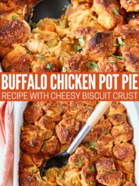 If you love classic comfort food with a bold, spicy twist, this Buffalo Chicken Pot Pie is about to be your new favorite dinner recipe! It has the creamy chicken filling you crave in a traditional pot pie, plus the irresistible kick of buffalo sauce, and a cheesy biscuit topping that you’re going to love! Cozy, hearty, and surprisingly easy to make, this recipe is perfect for weeknight dinners or game day weekends.