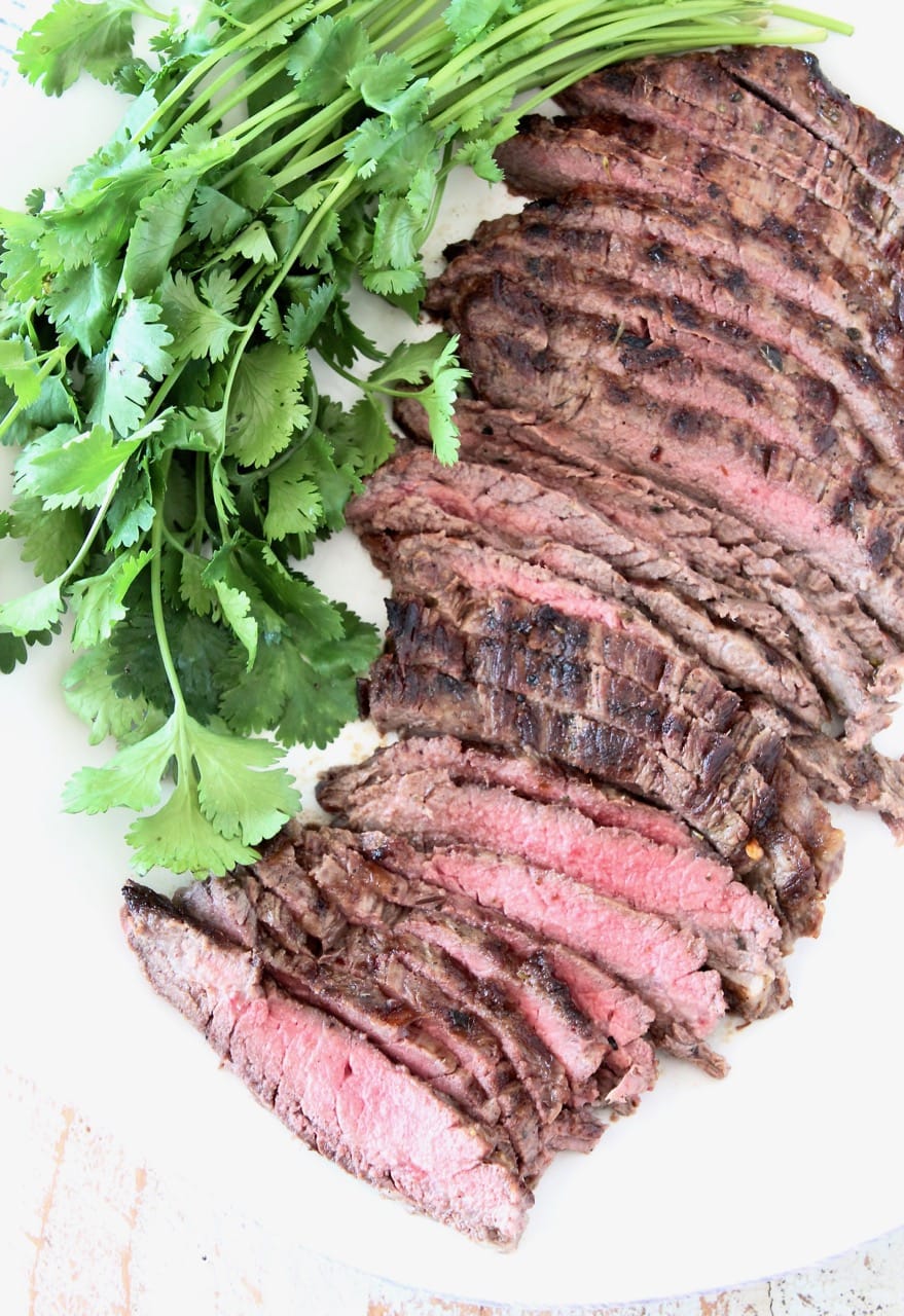Sliced Grilled Cajun Skirt Steak with Fresh Cilantro
