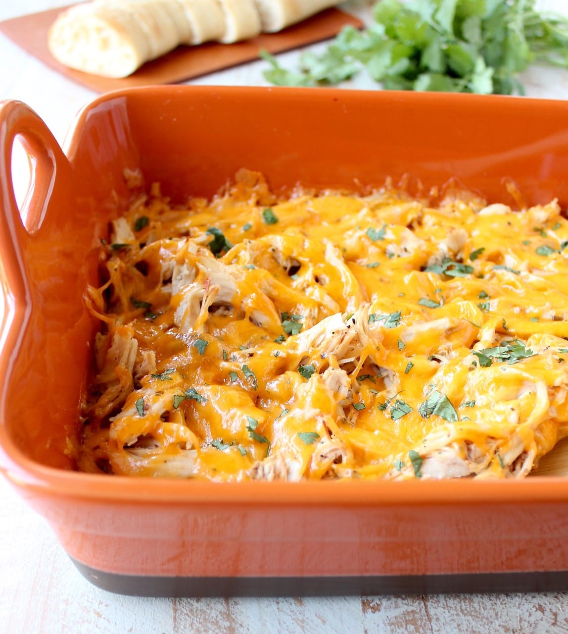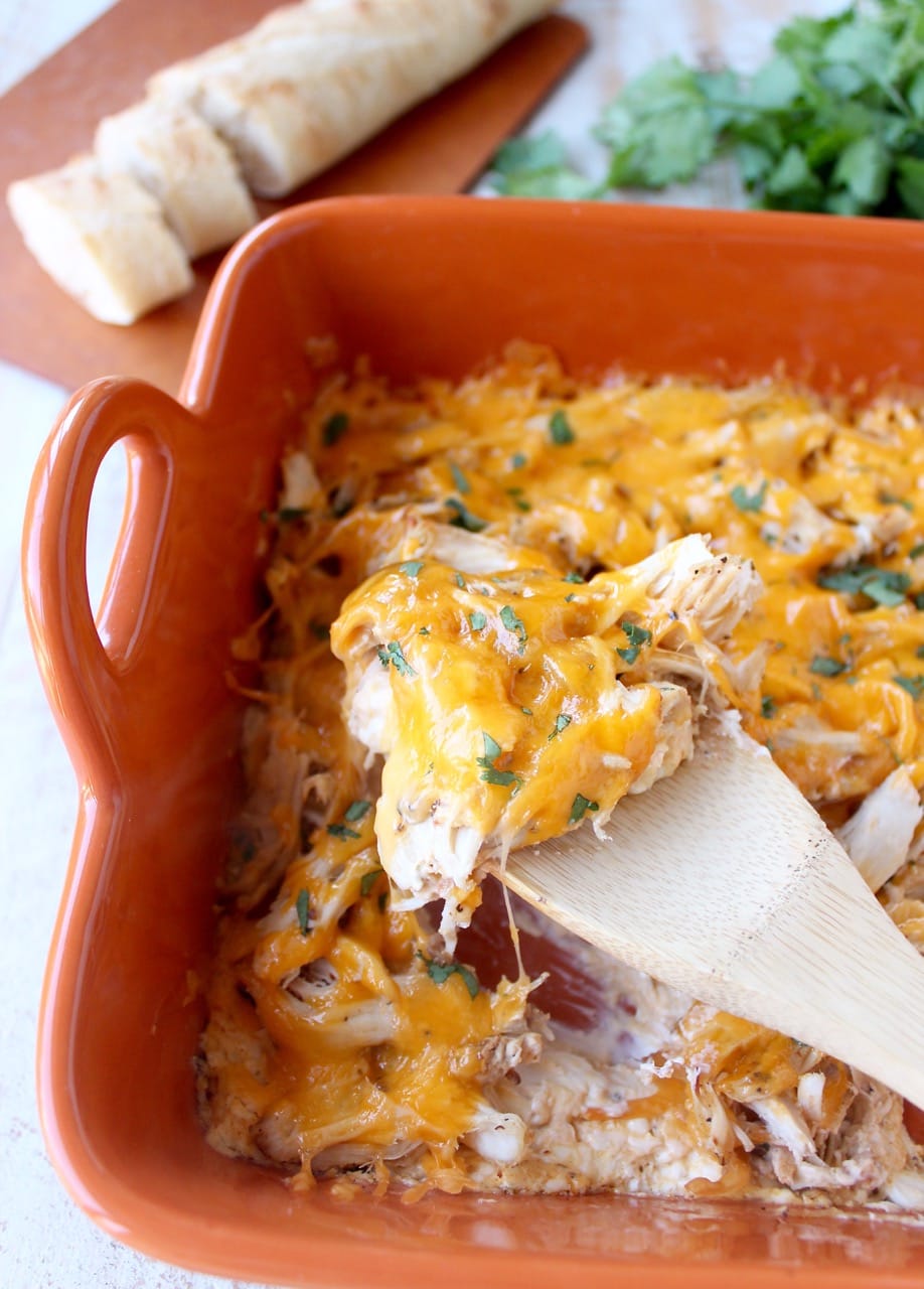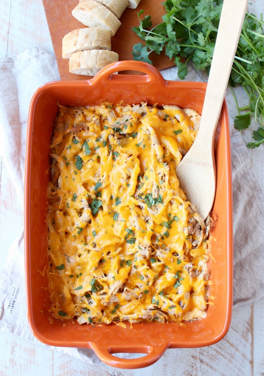 I finished the dip off with a layer of cheddar cheese, popped it in the oven for a few minutes, then toasted up a baguette to serve on the side.