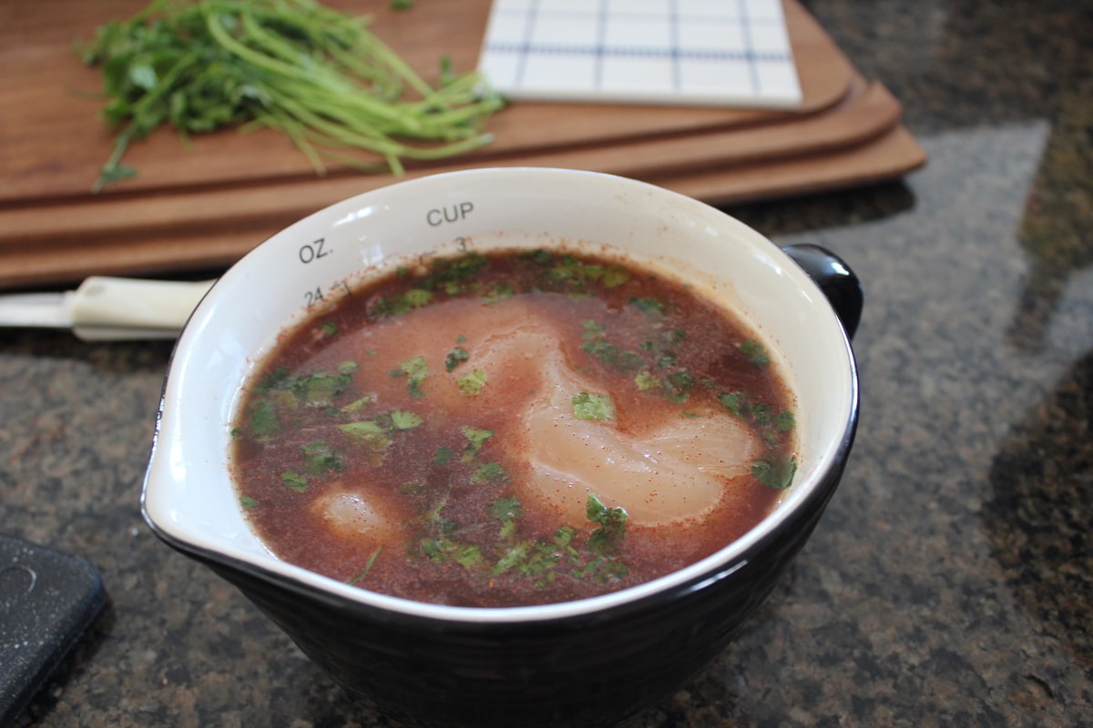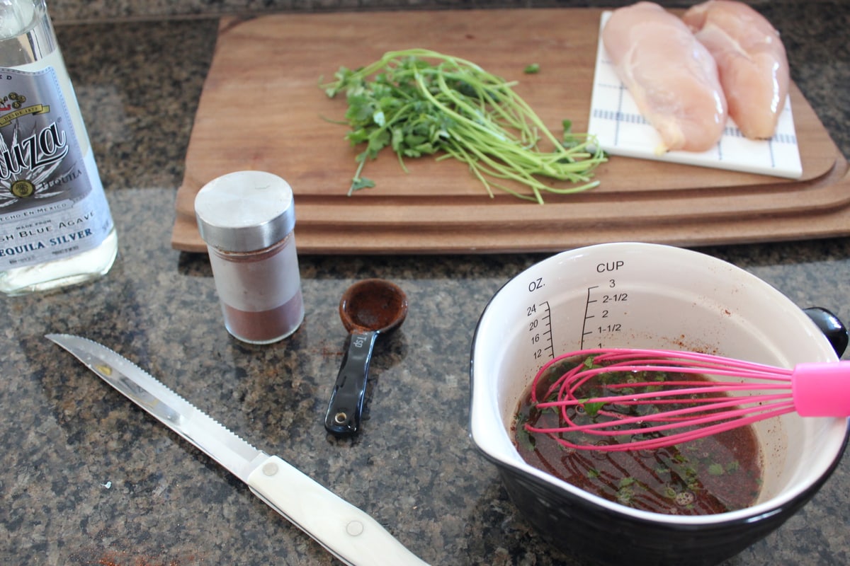 - Combine the tequila, lime juice, honey, chili powder and cilantro in a medium mixing bowl.