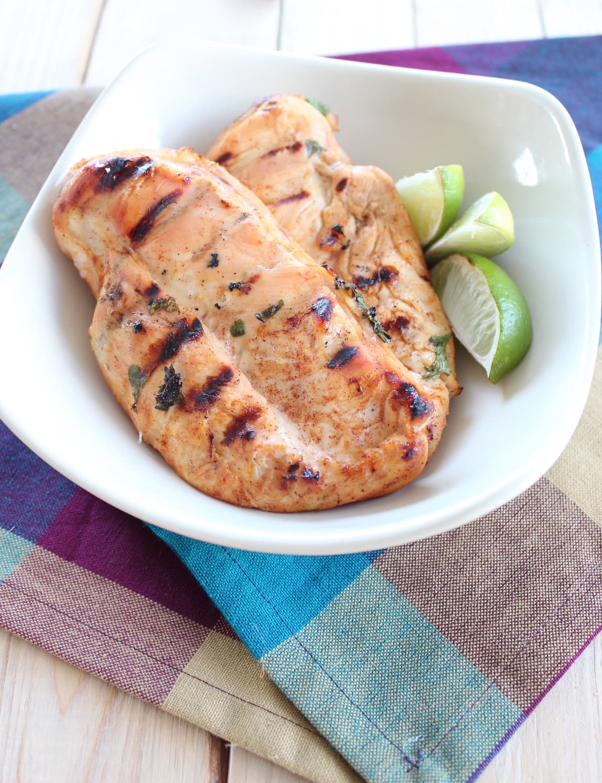 Marinate for 30 minutes in the refrigerator then grill over medium-high heat for 20 minutes, flipping half way through grilling.