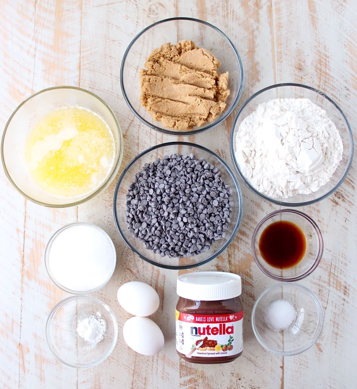 Nutella contains a delicious combination of ingredients, like roasted hazelnuts and cocoa. I love Nutella on apples, bagels, and shortbread cookies, but really love it in this chocolate chip cookie cup recipe!