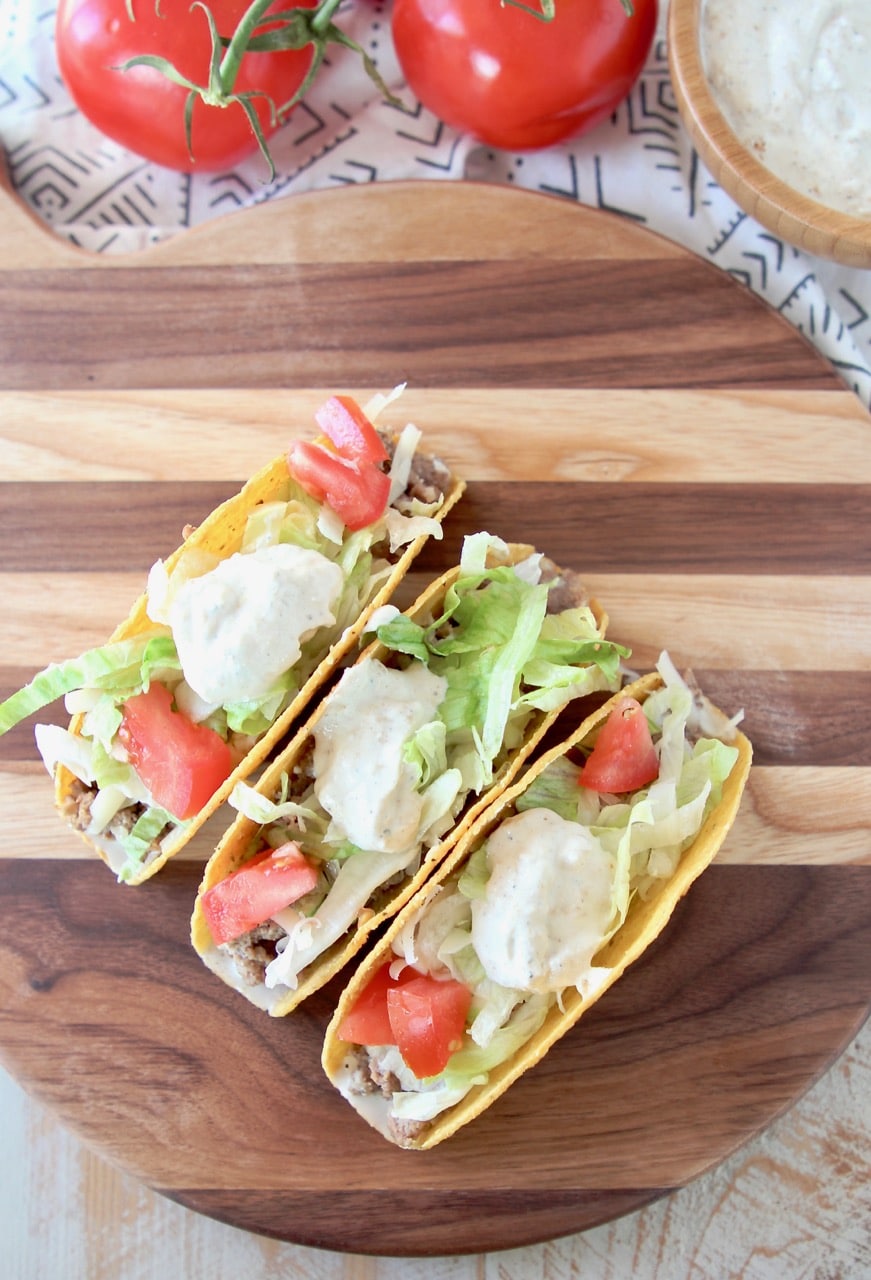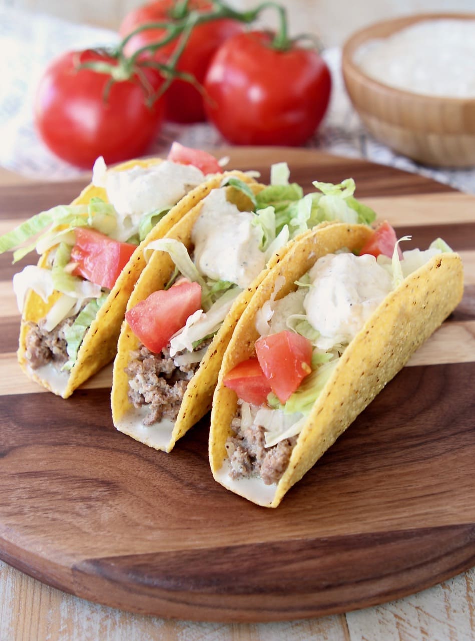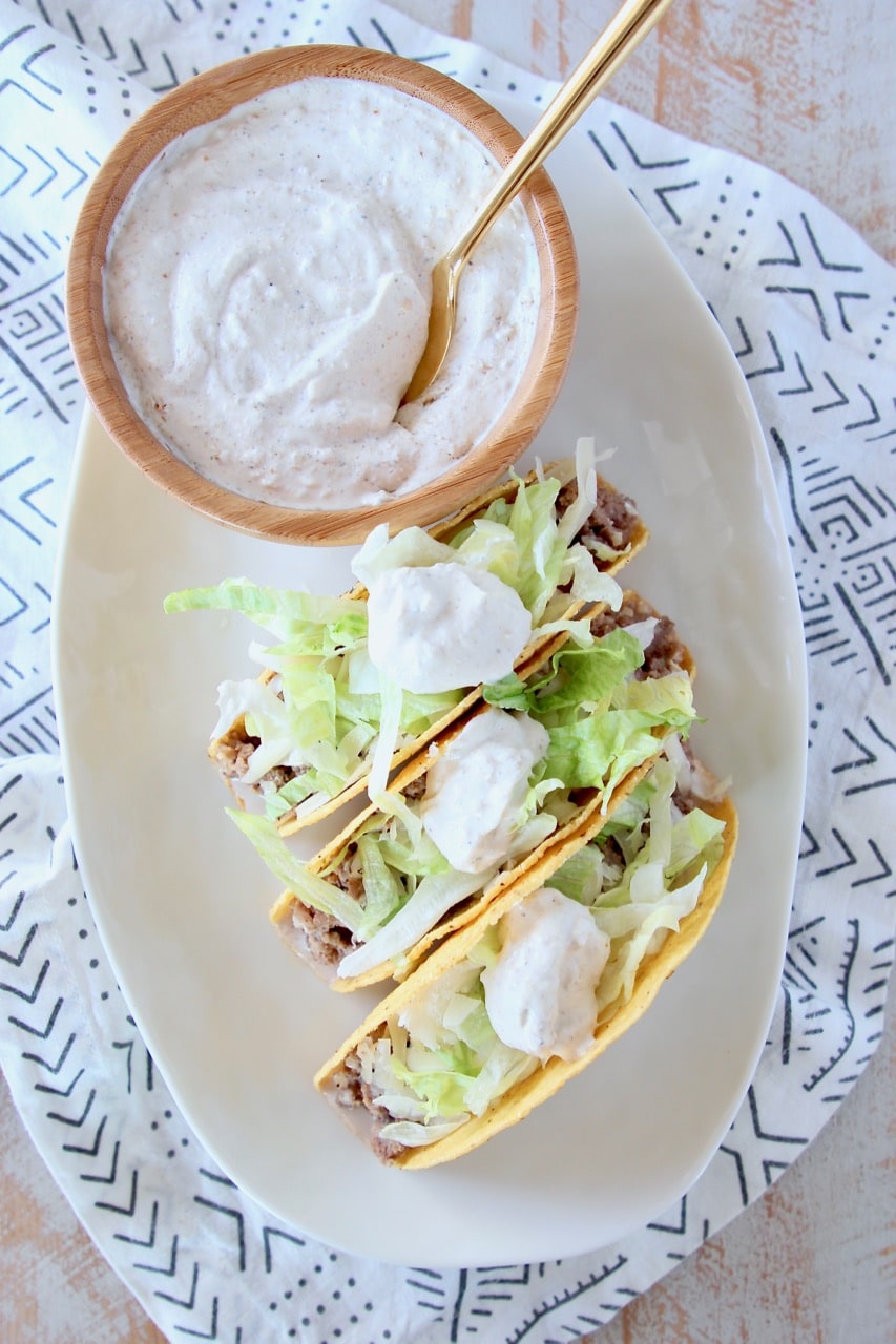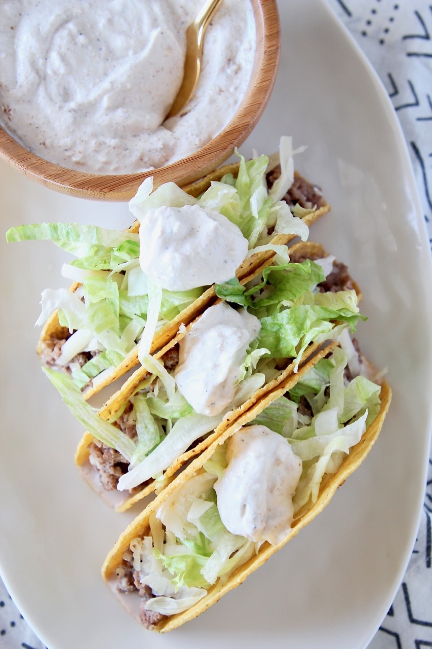 Next up, I made these French Onion Dip Tacos. The perfect game day food that combines easy ground beef tacos with a seriously delicious dip!