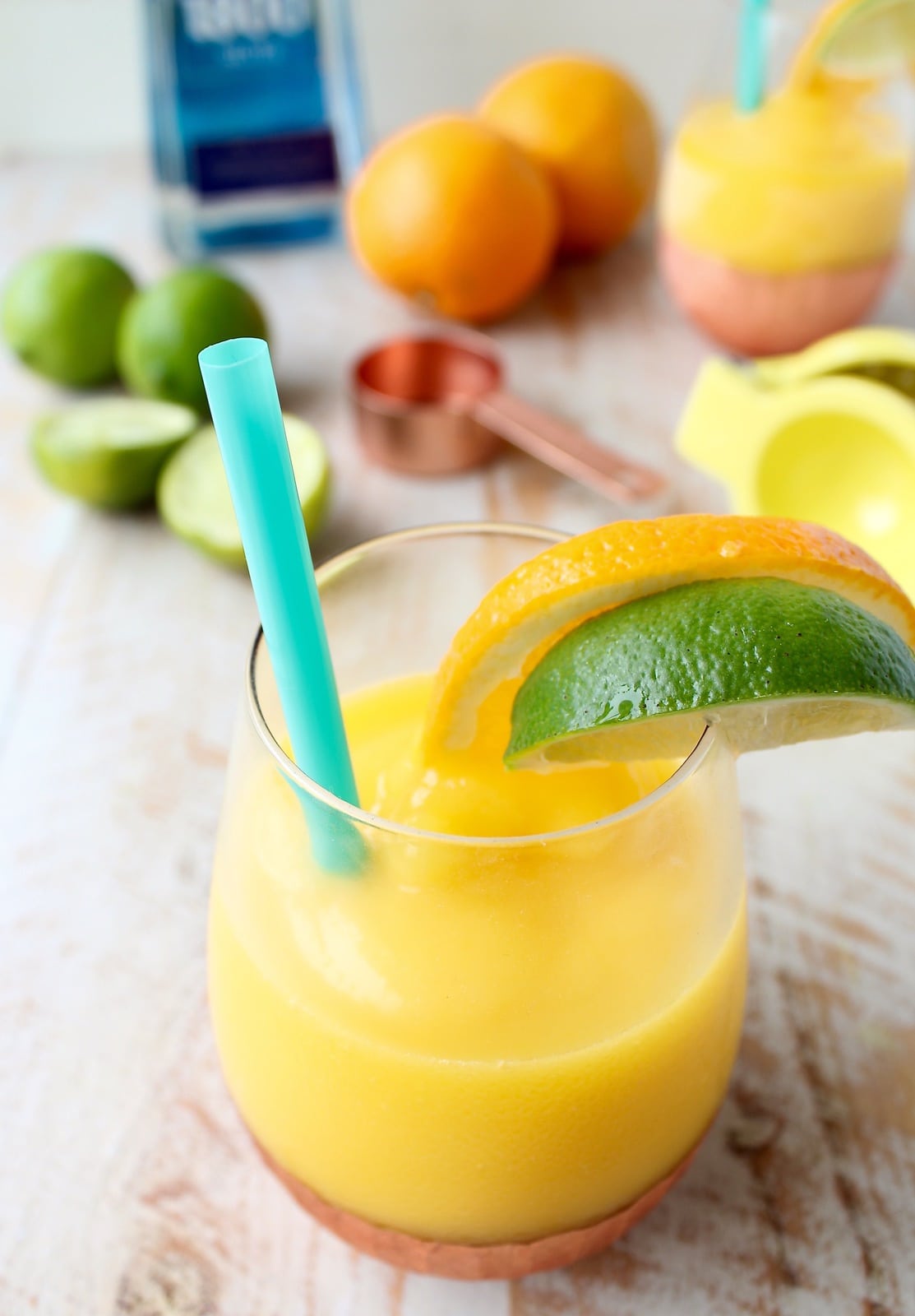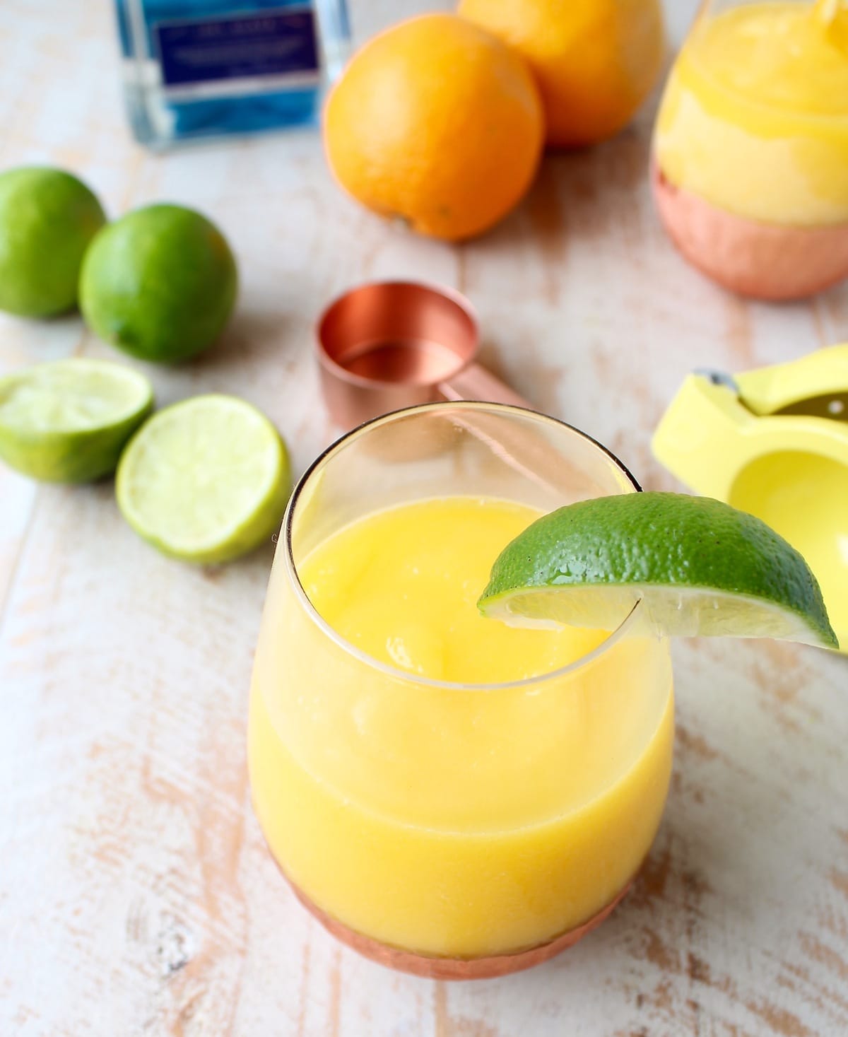 Mango, fresh squeezed orange and lime juice, tequila and triple sec are combined in this deliciously light & refreshing Frozen Mango Margarita Recipe!