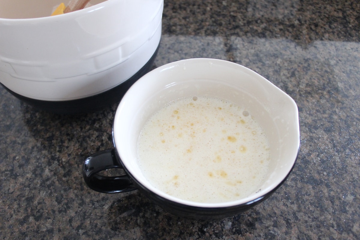 While the biscuits are in the oven whisk the melted butter and garlic powder together for the topping.