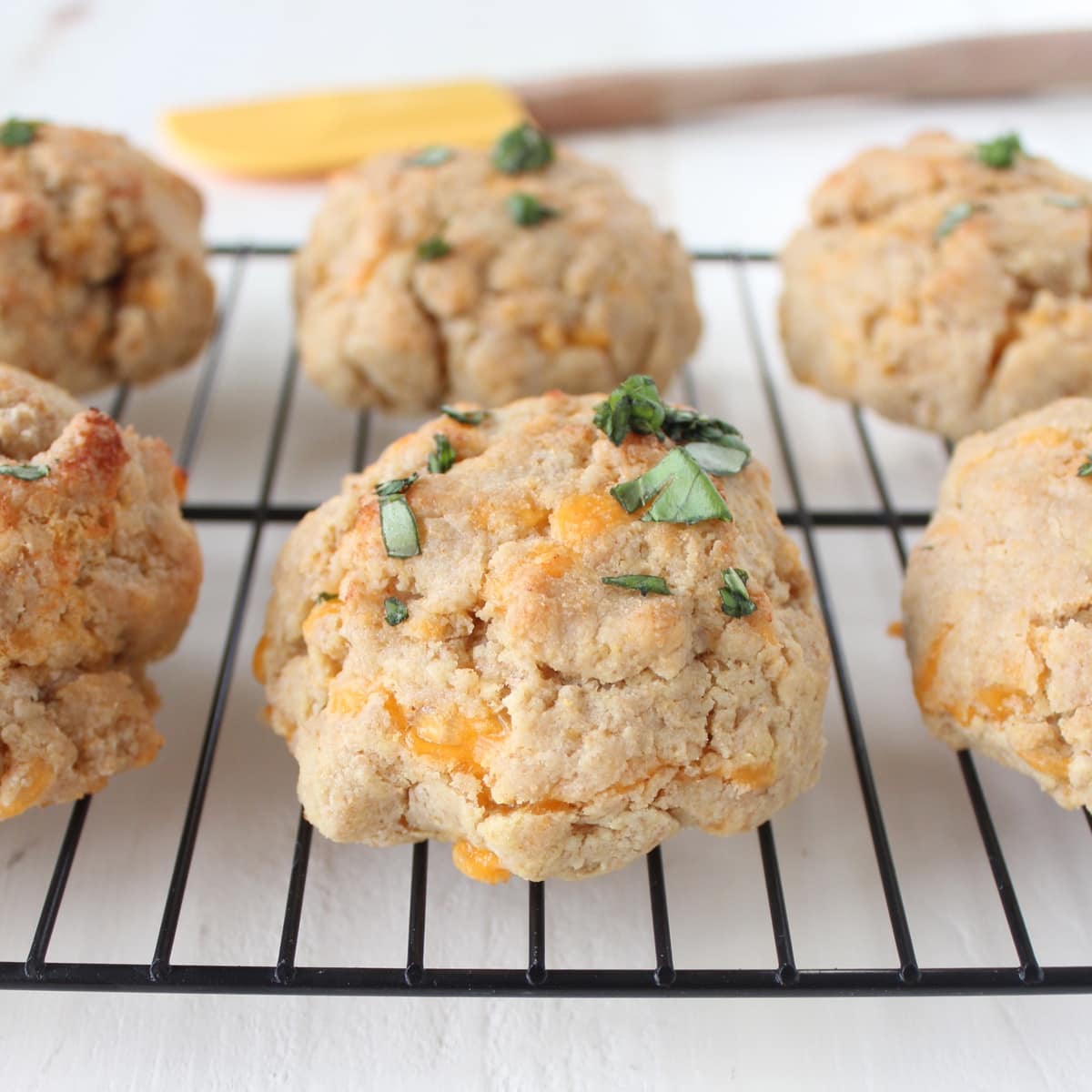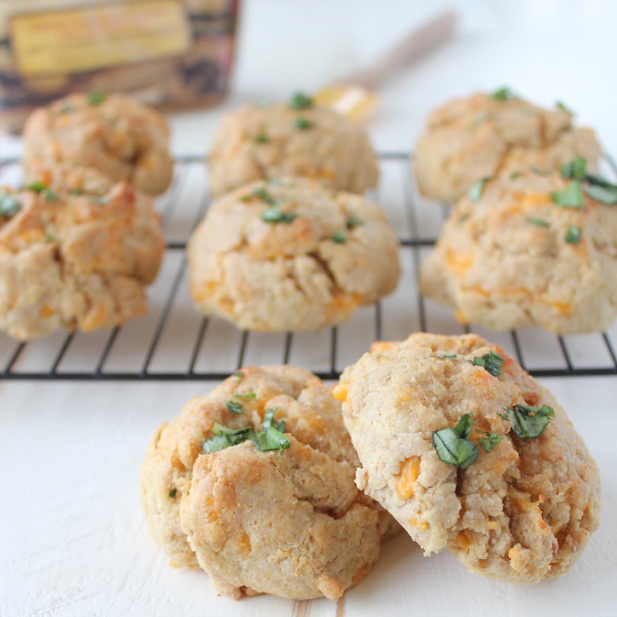 I decided to re-create the popular side dish from the cookbook, but in this version I left out the buffalo sauce and used gluten free flour to make these delicious cheddar biscuits gluten-free!