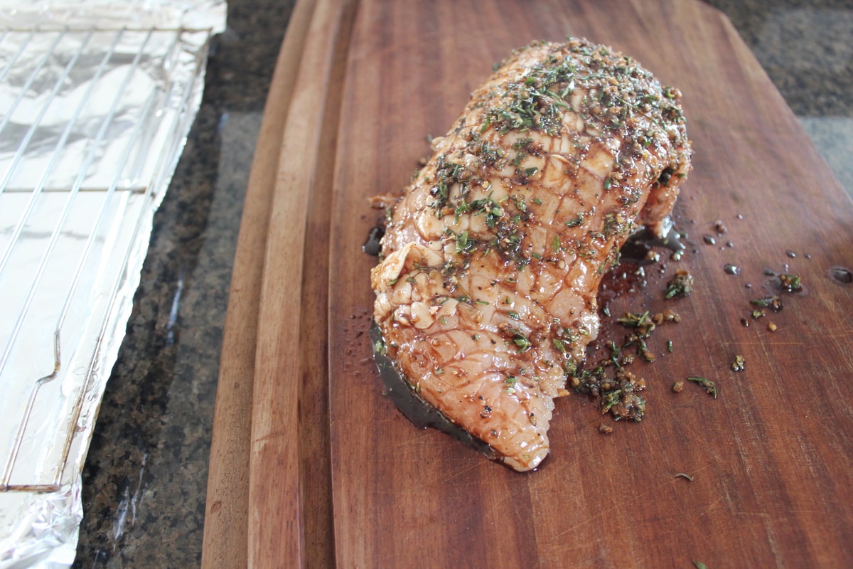 - If the turkey breast still has the skin attached, I recommend using a sharp knife to remove it before making this recipe. Since the skin is not exposed, it will not get crispy, and therefore the texture of the skin won’t be great.