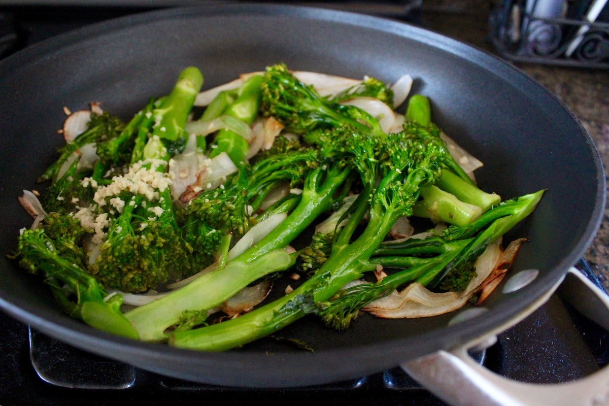 - Add the broccoli, saute 4-5 minutes, then add the onion and saute for an additional 4-5 minutes.
