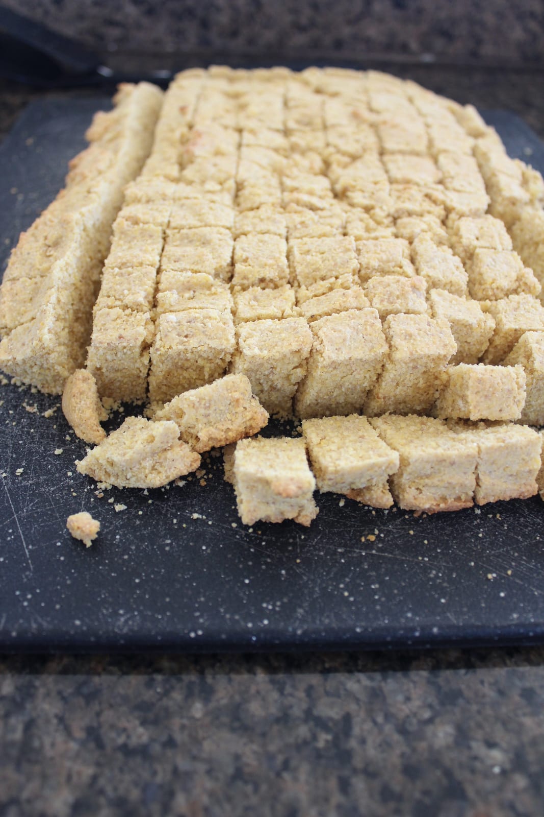 • Allow the cornbread to cool then slice into cubes and set aside.