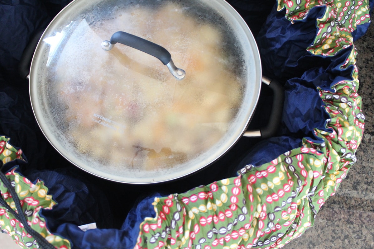 Cover the pot with a tight fitting lid and place in the Wonderbag.
