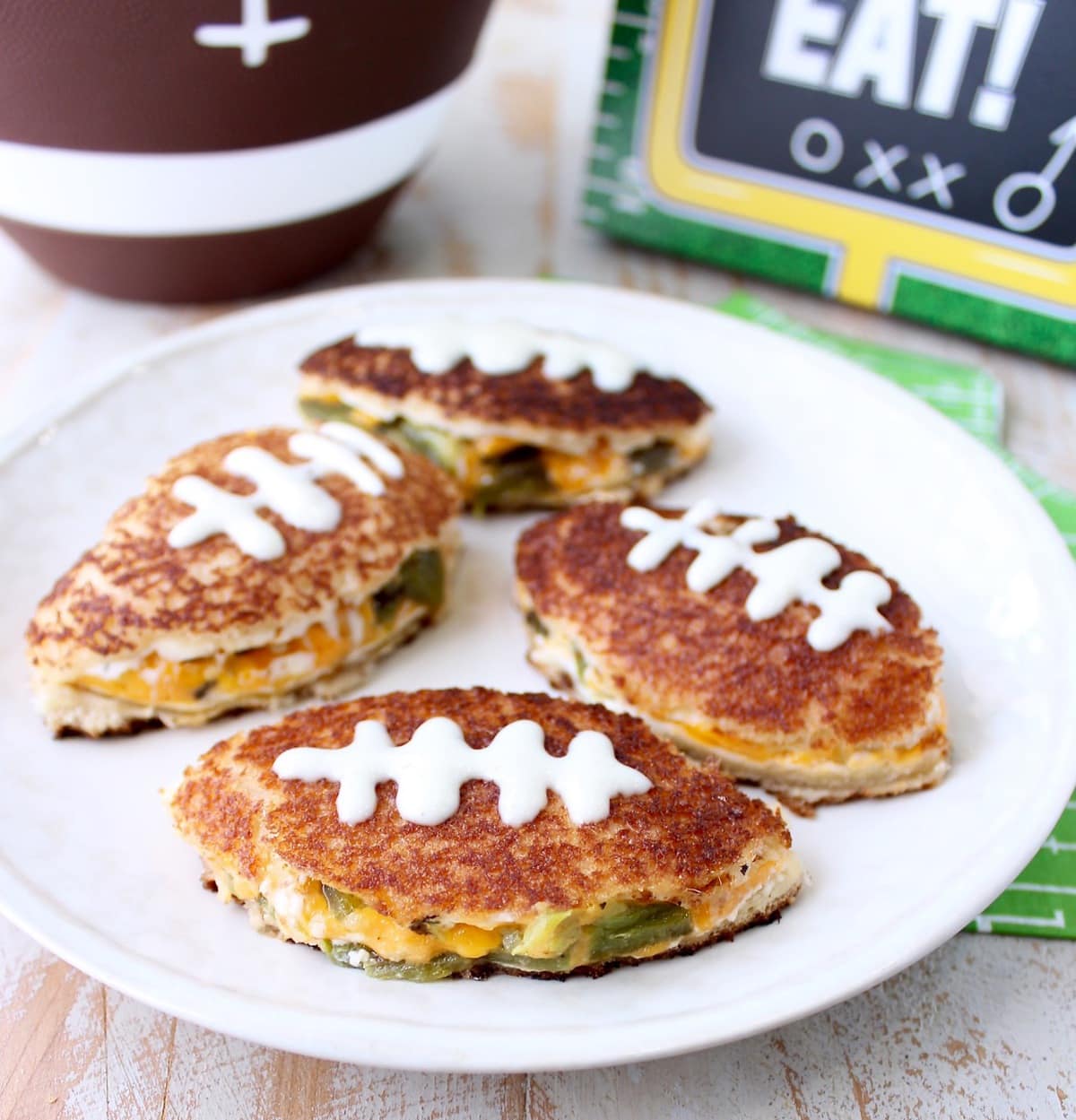 Football Shaped Jalapeño Popper Grilled Cheese Sandwich