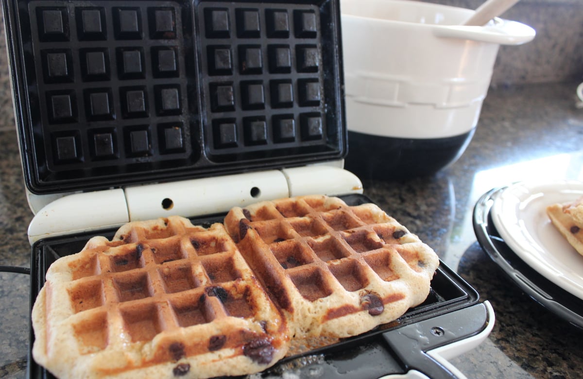 - Mix well, then spoon the mixture into a waffle iron and cook.