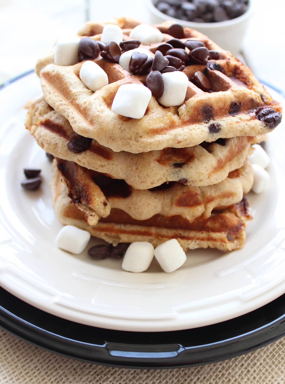 Gooey marshmallows combined with honey cinnamon waffles and melty chocolate chips, yum, yum, yum yum!