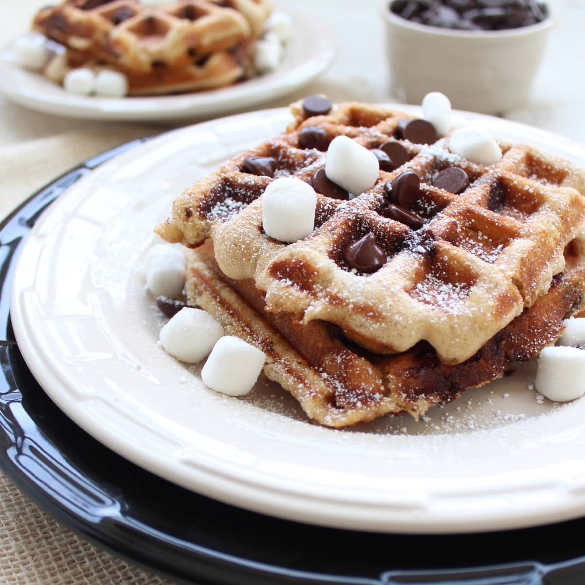 Gluten Free S’Mores Waffles combine all of your favorite ingredients from the campfire treat in a delicious and simple breakfast recipe!