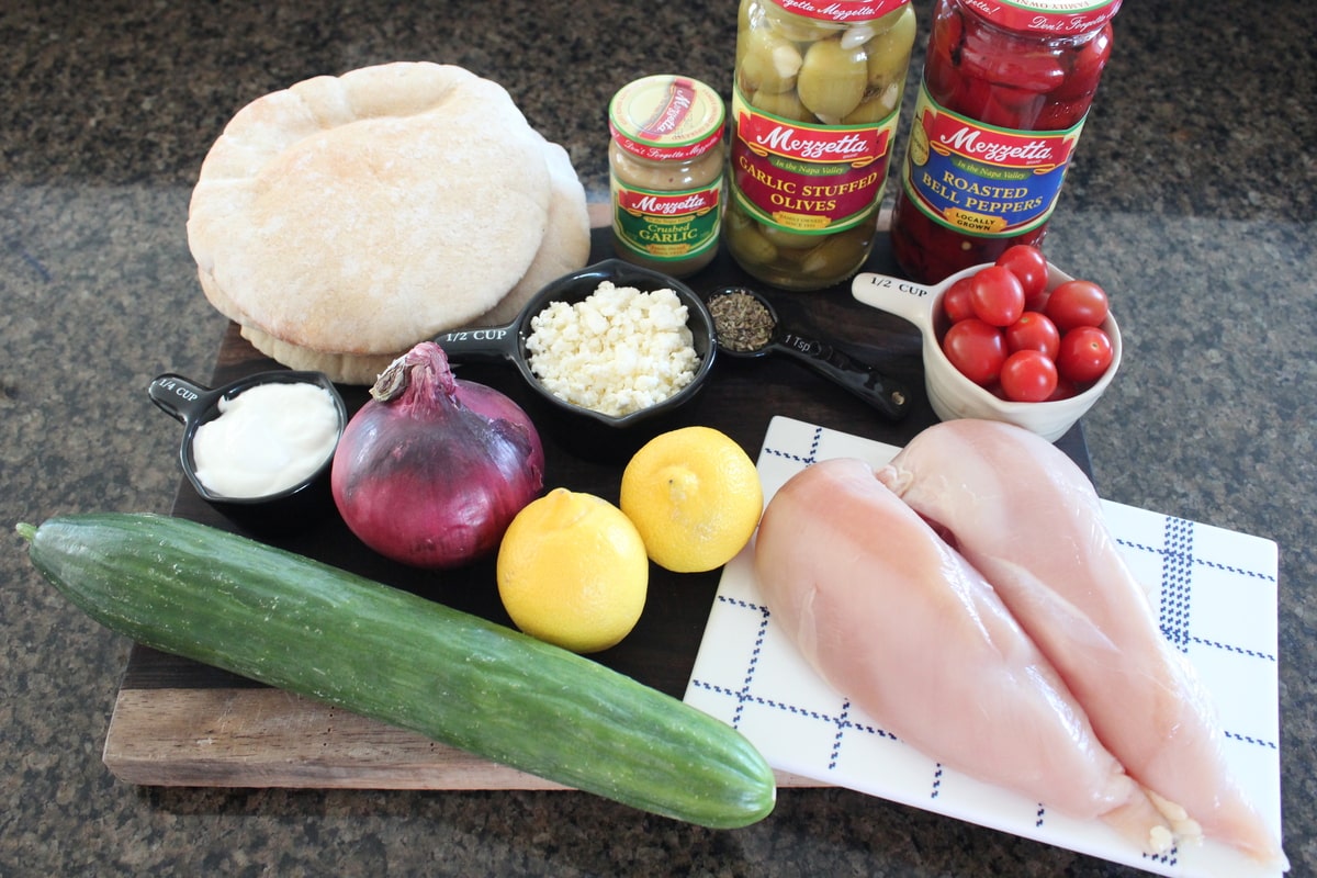 - Pita bread – I love to serve this Greek chicken salad as a pita sandwich. But you can eat it with a fork, on crackers or toast instead if you’d like.