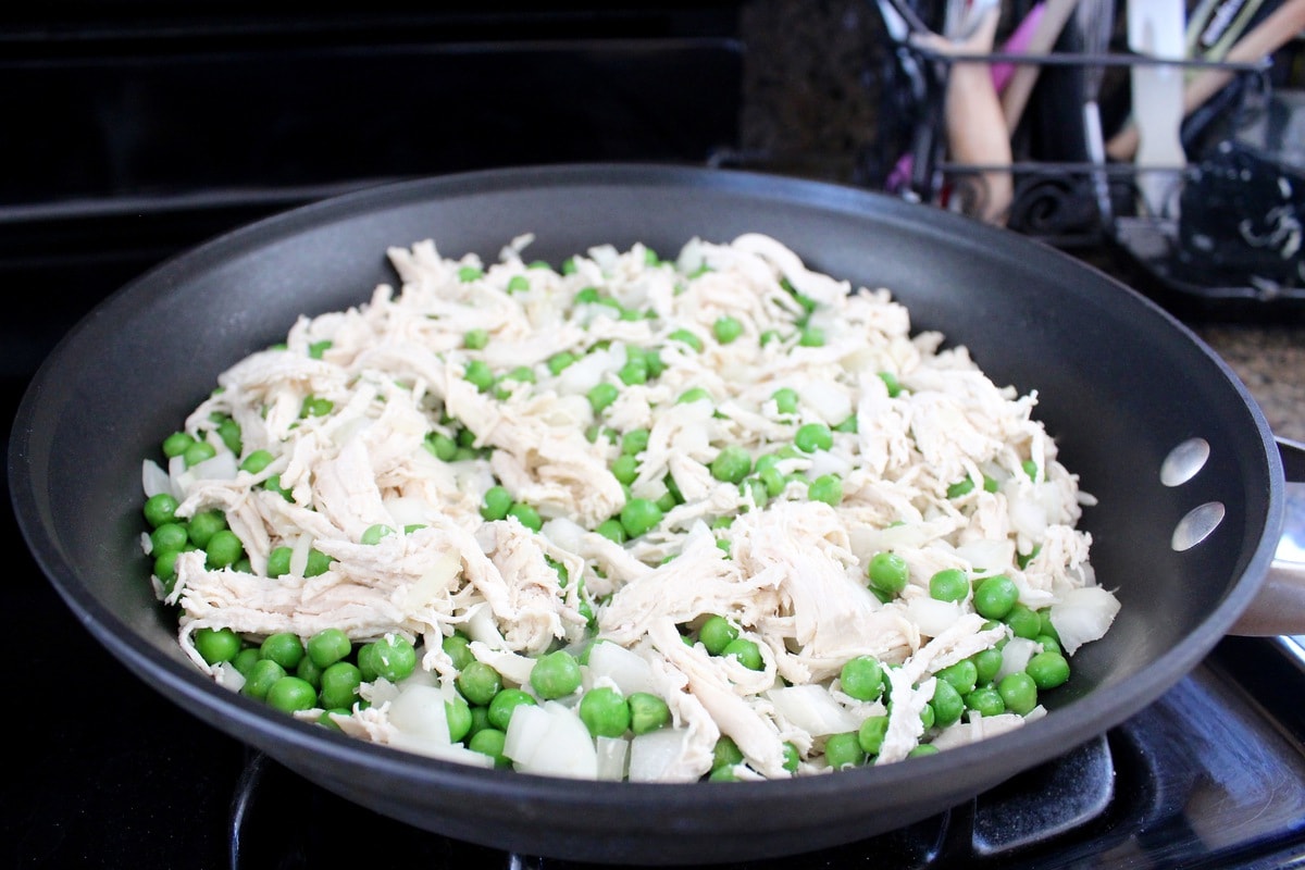 Cook 4-5 minutes, then add the garlic. Cook for an additional minute, then add the chicken.