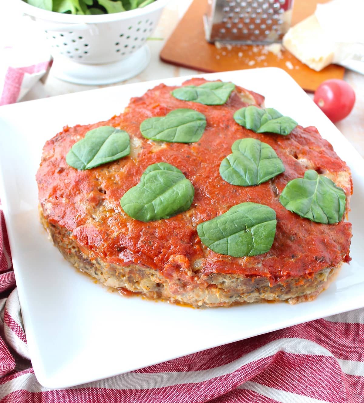 For an extra level of “cute factor”, when the meatloaf comes out of the oven, top it with baby spinach or sliced mozzarella cut into small heart shapes with a cookie cutter.