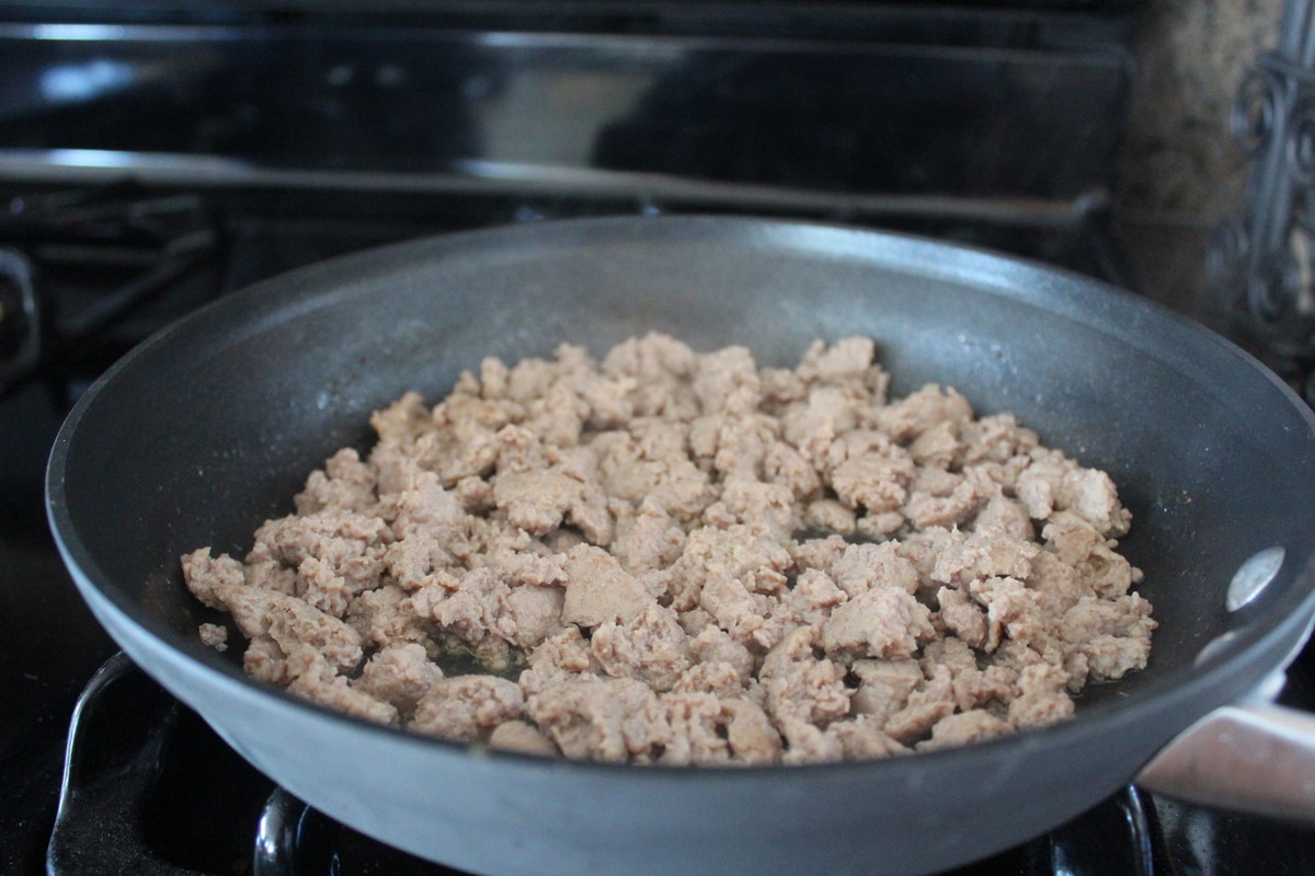 Begin by cooking the Italian sausage. I used two links of the Sweet Italian Turkey Sausage seen pictured above, removed the sausage from the casing, crumbled and cooked the sausage on the stove top over medium heat for 7-9 minutes.