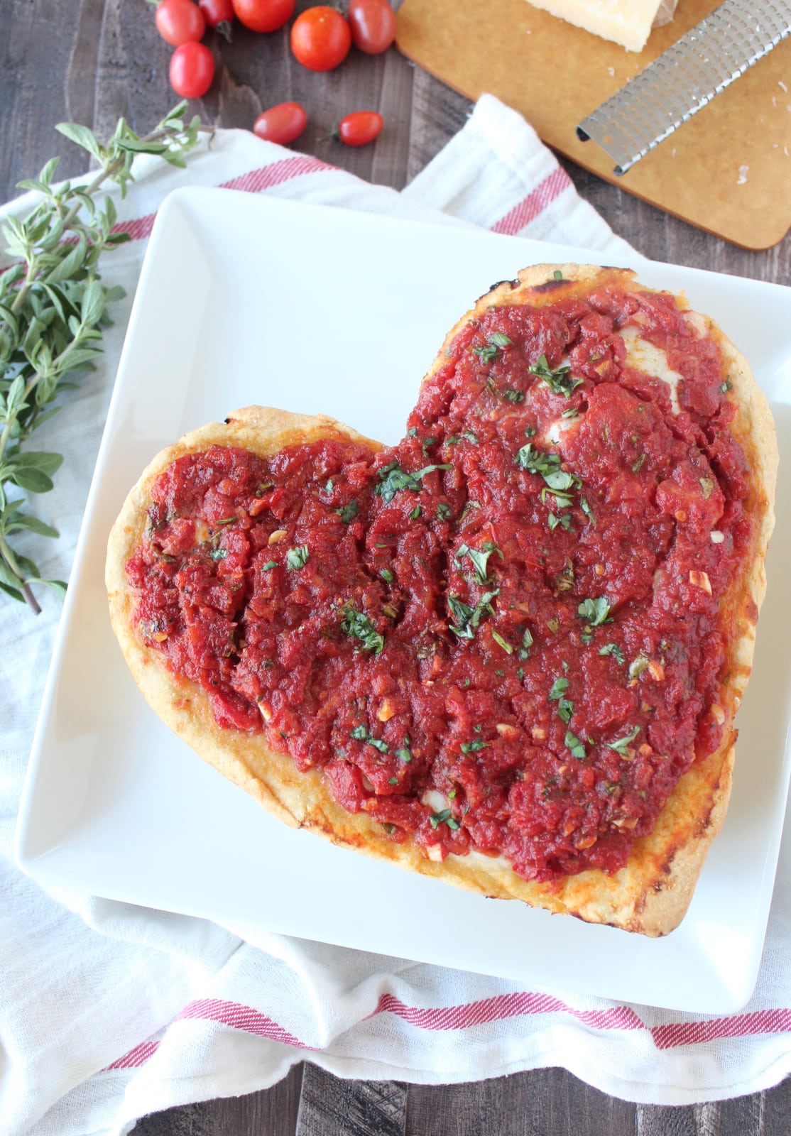Don’t have a heart shaped pan or prefer a thin crust heart-shaped pizza?