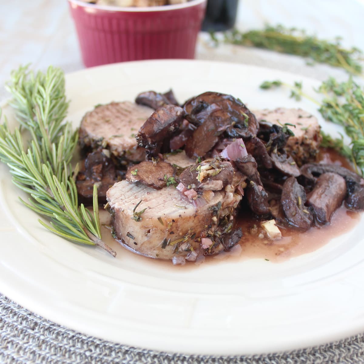 Herb Rubbed Pork Tenderloin Recipe in Red Wine Mushroom Sauce