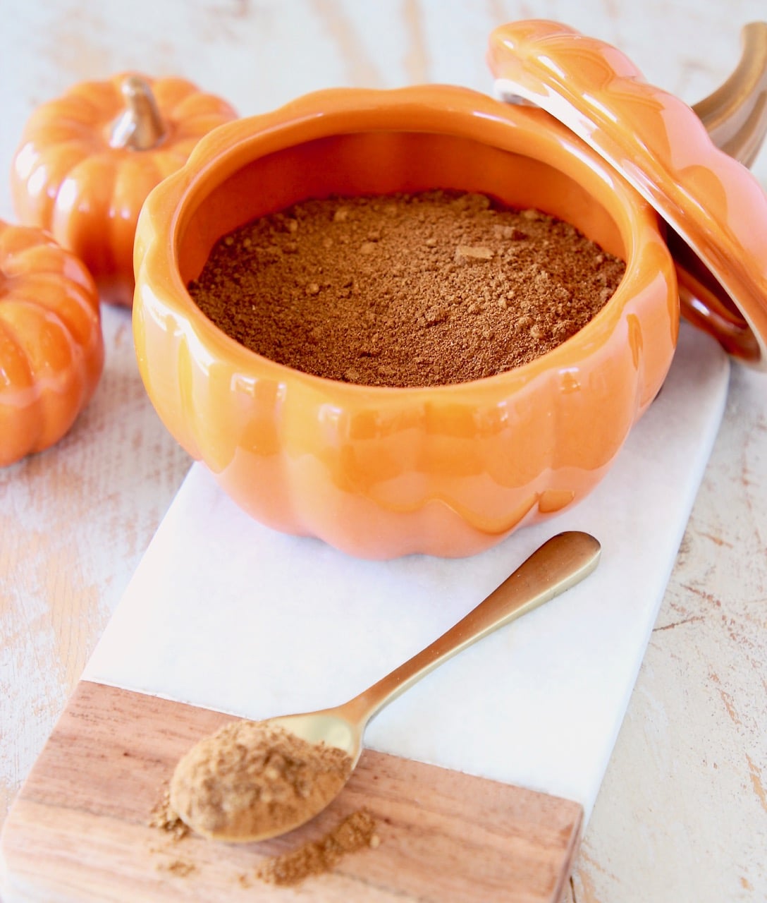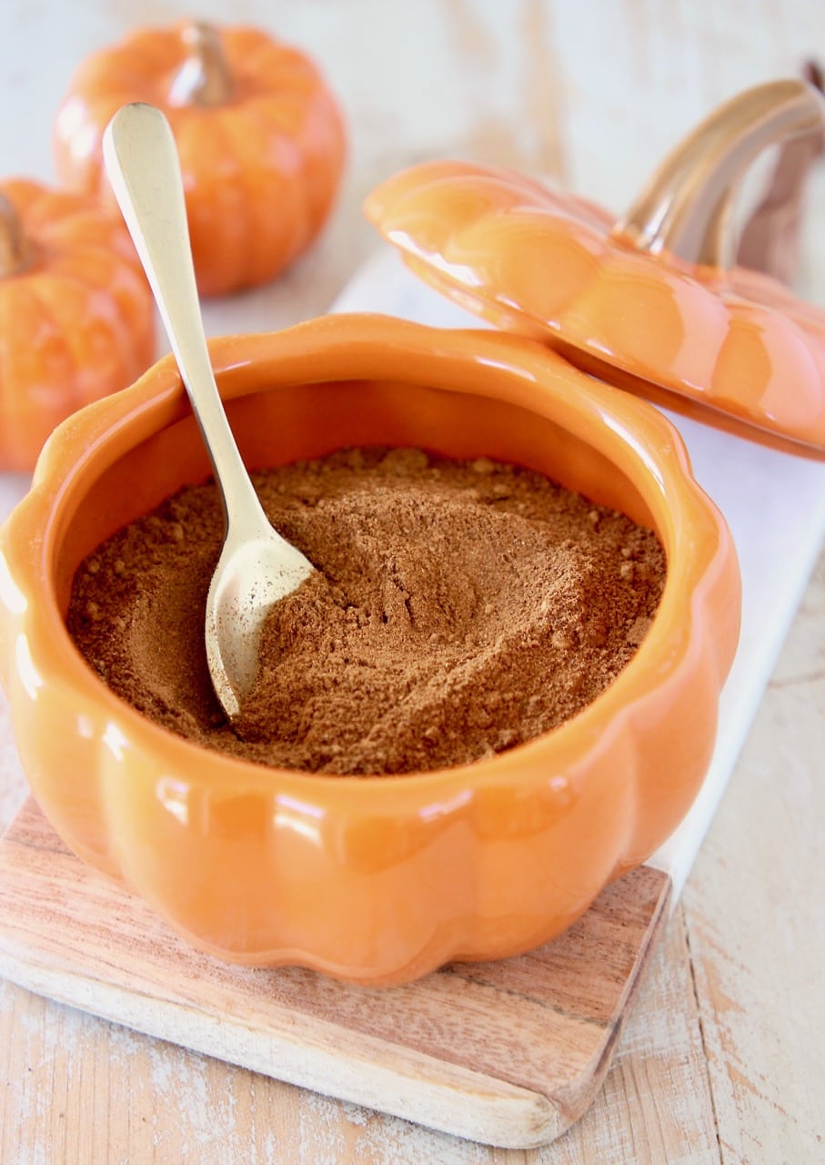 Homemade pumpkin pie spice is easy to make in just 5 minutes! It’s gluten free and can be added to desserts, drinks, chili recipes, Thanksgiving pies and so much more!
