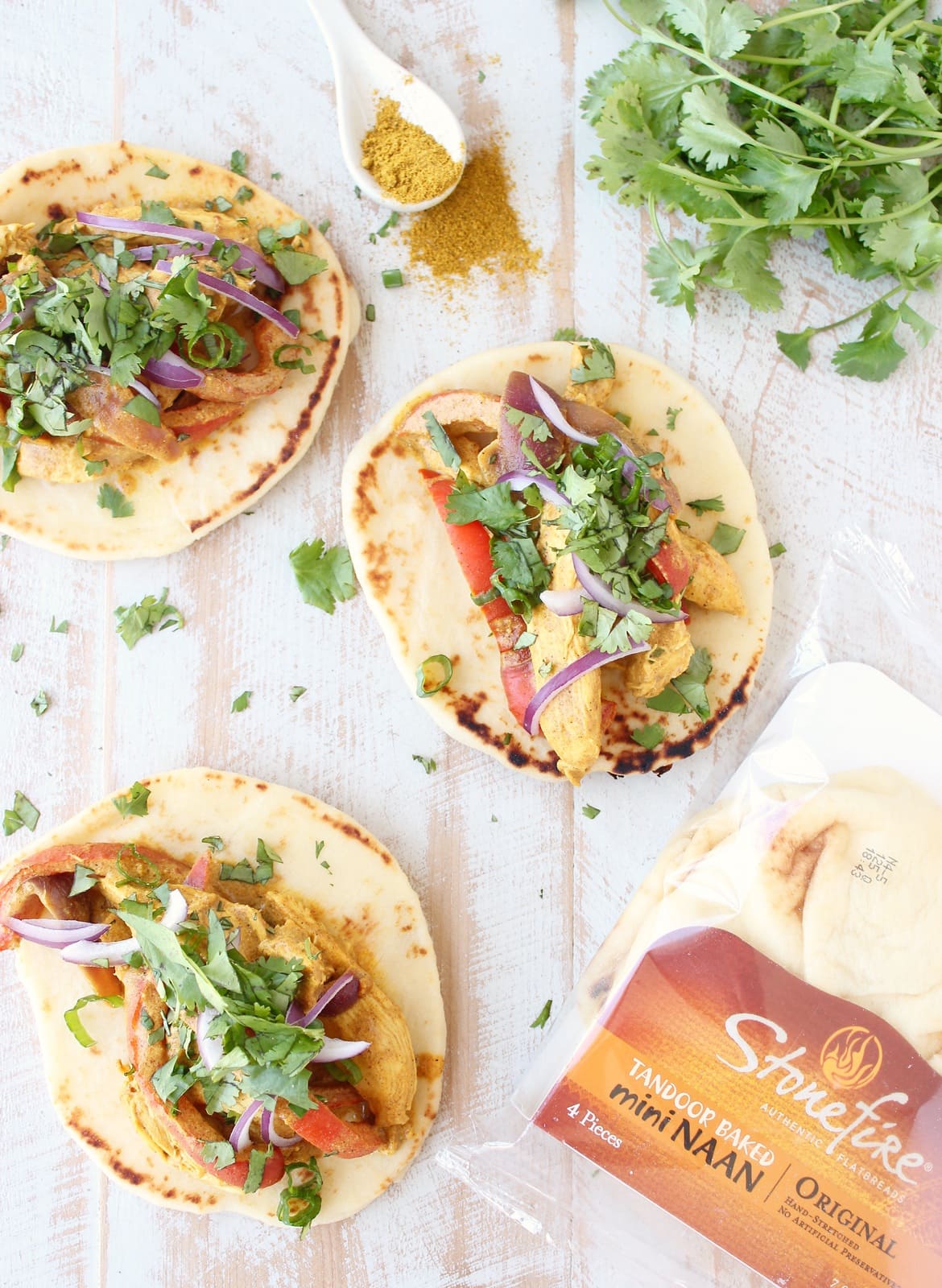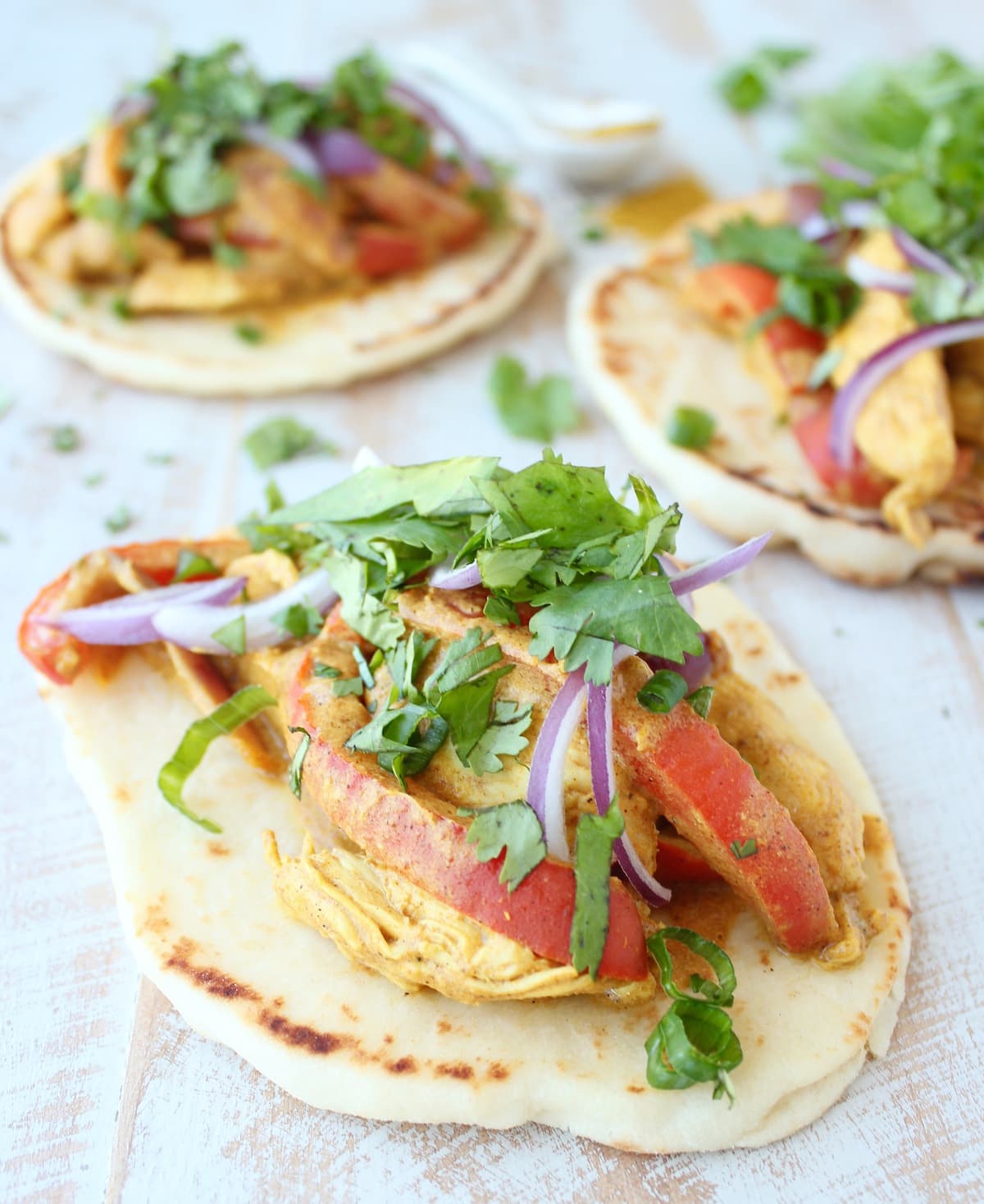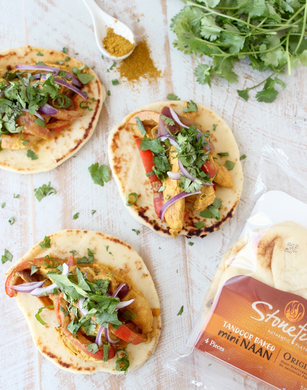 - Serve the Curry Chicken in the Mini Naan, and top with the optional ingredients of your choice.