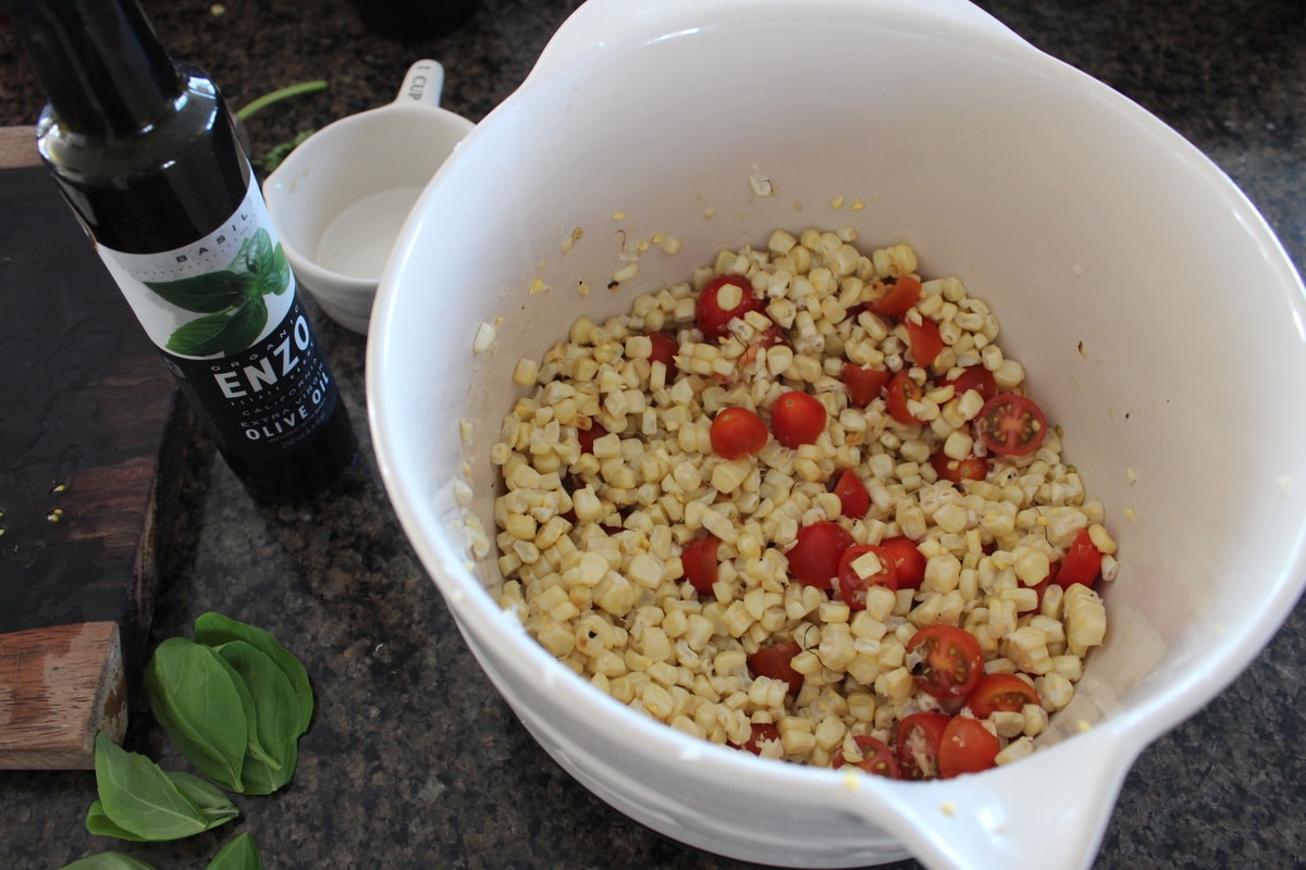 - Pour the dressing over the corn and toss.