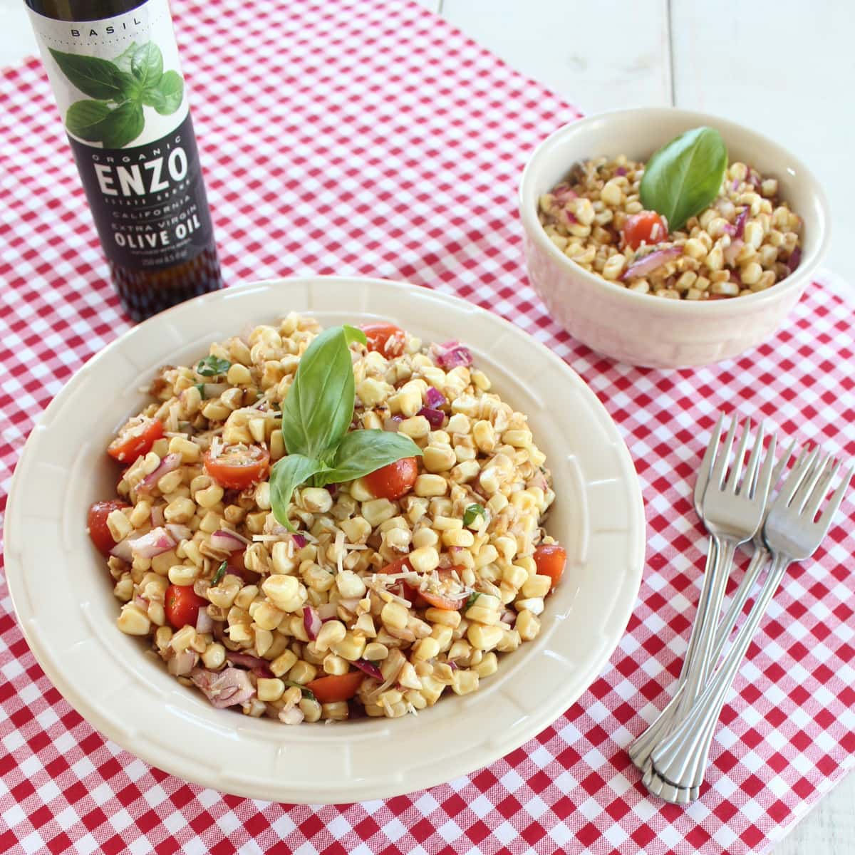 Italian Corn Salad combines fresh tomatoes, basil, grilled corn and parmesan cheese in the perfect summer salad recipe that’s made in under 30 minutes!