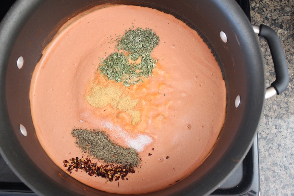 - Add the oregano, parsley, garlic powder, black pepper, kosher salt and red pepper flakes, stir everything together.