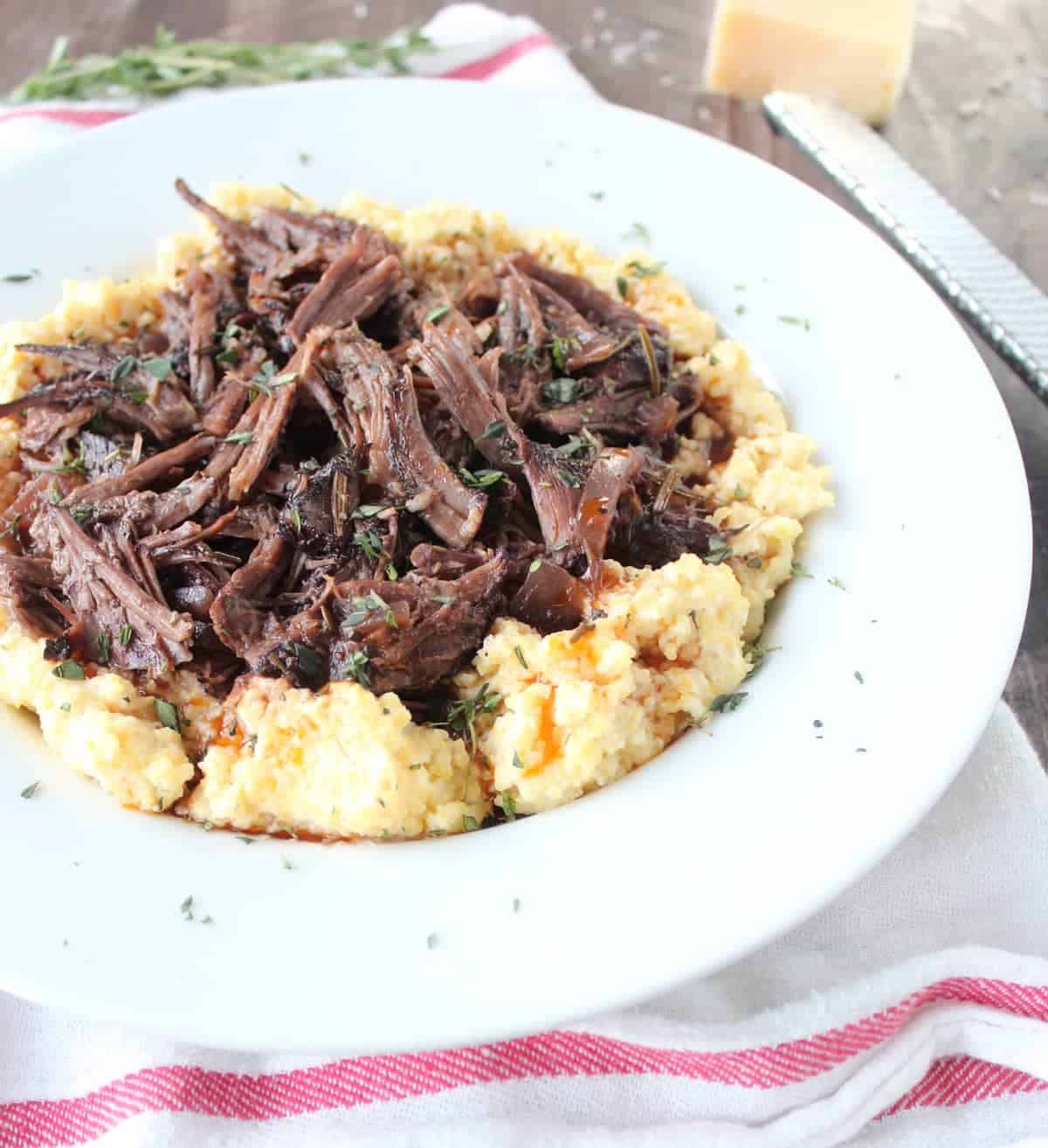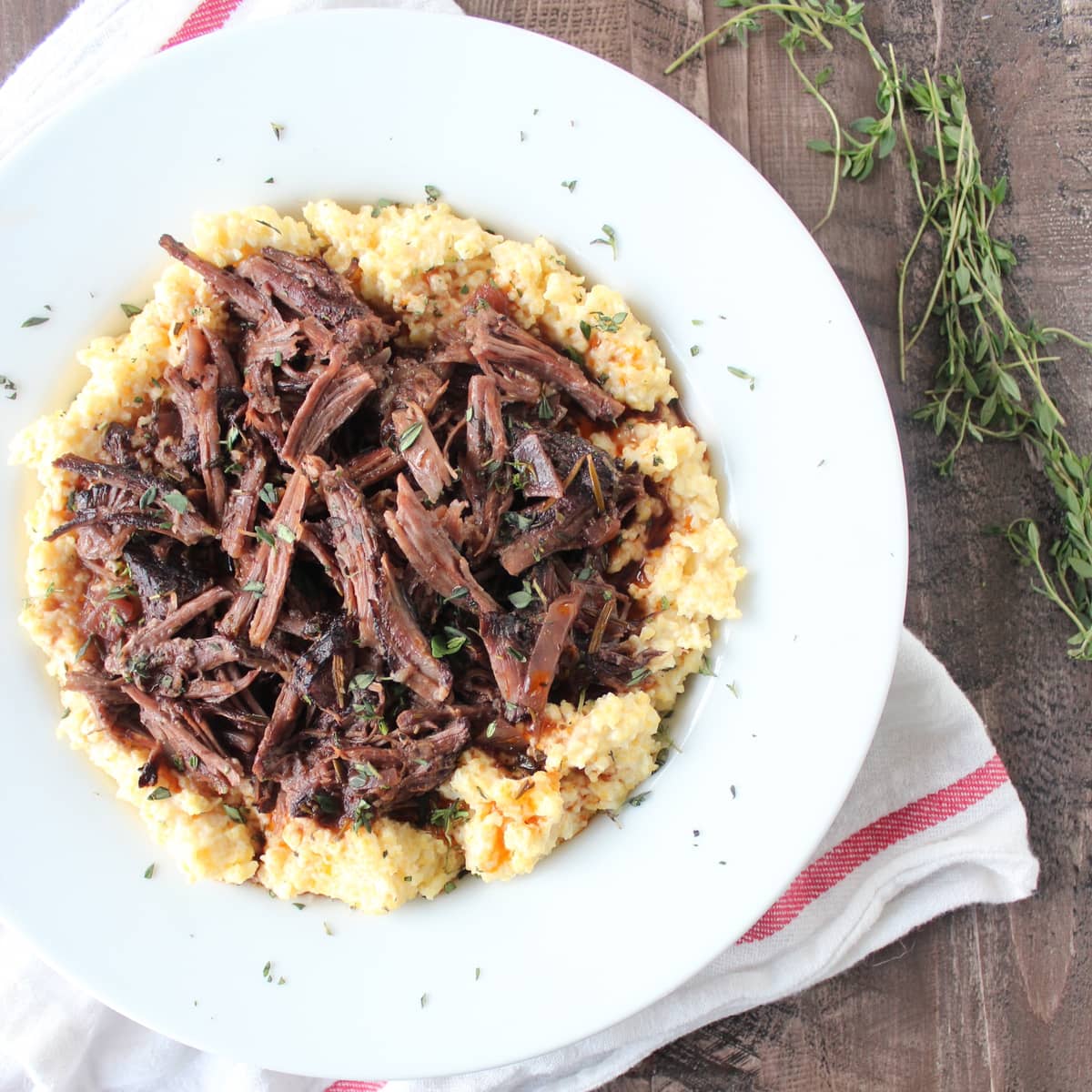 Beef short ribs are rubbed with Italian herbs then slow braised in a red wine sauce in this delicious gluten free braised short ribs recipe.