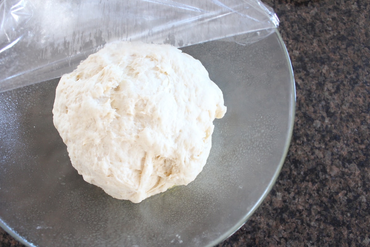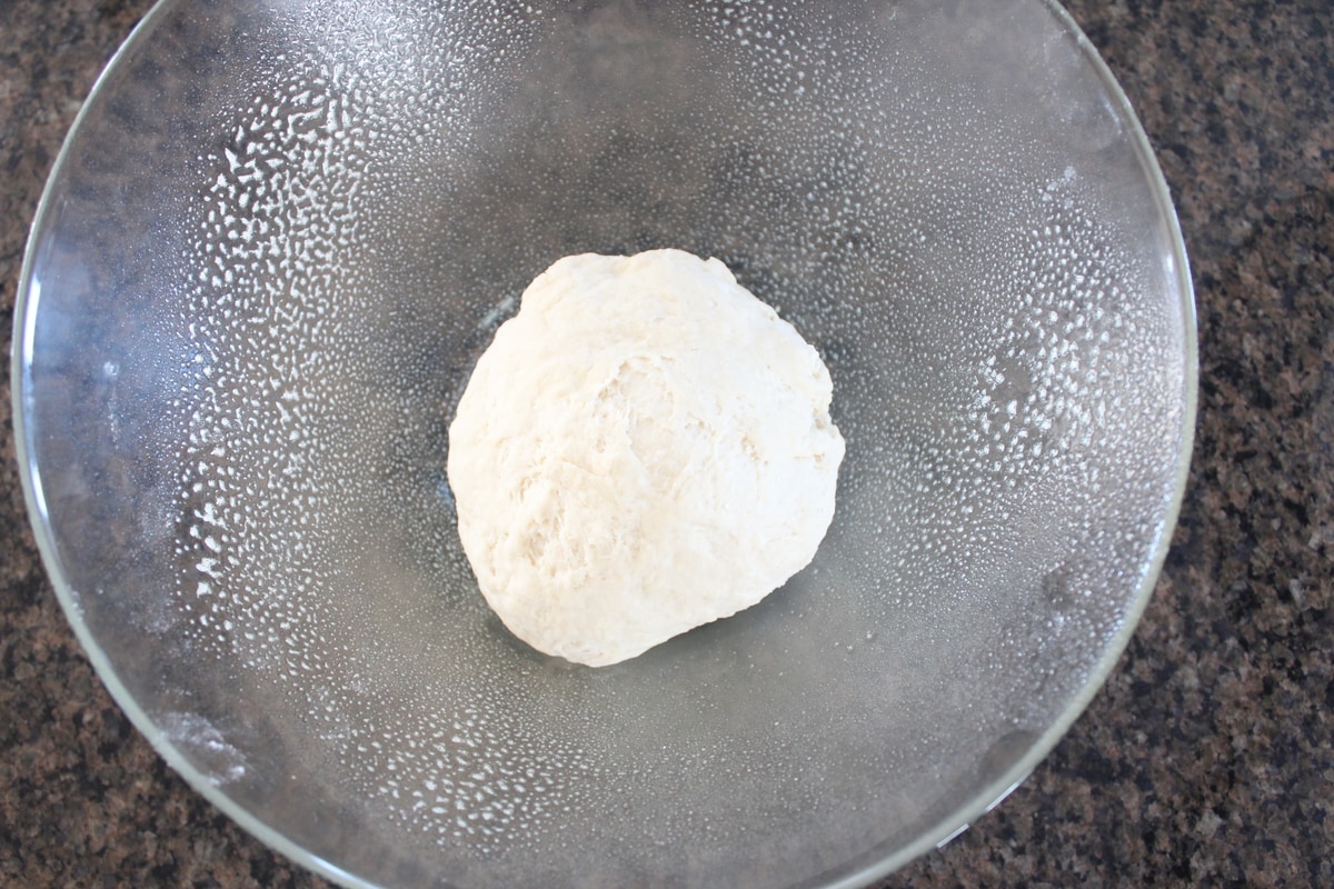 Spread 2 tbsp olive oil on the inside of a bowl and place the kneaded dough into the bowl.
