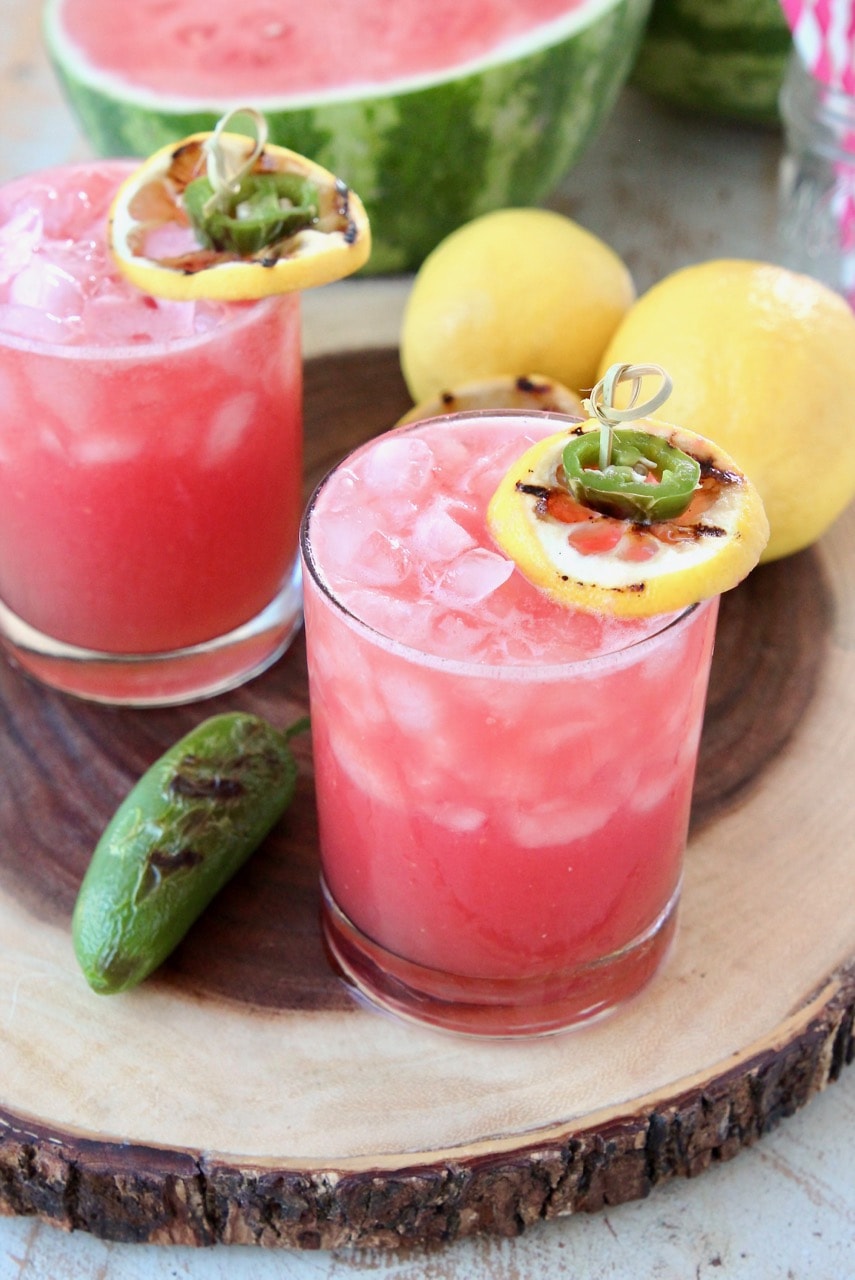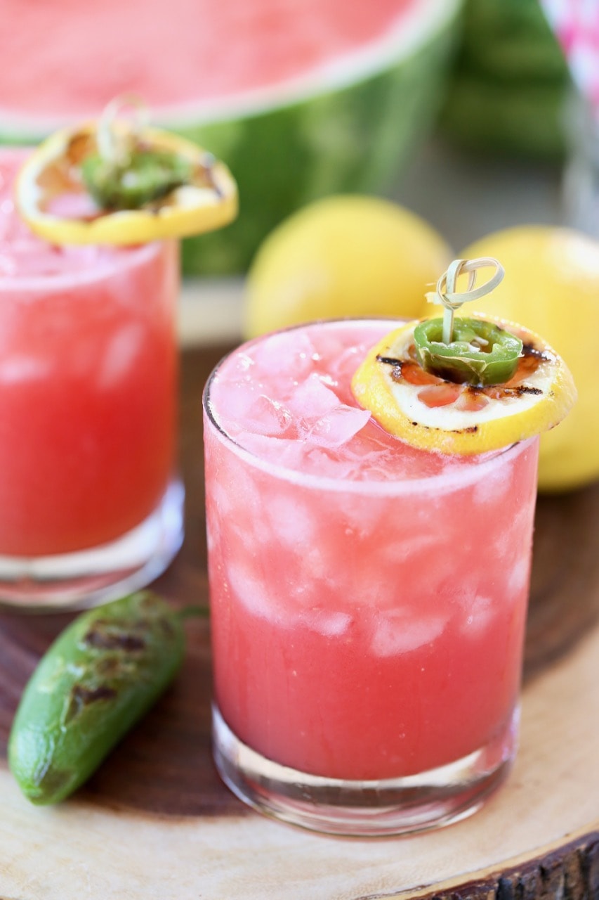 - Stir to combine. Garnish with a lemon wheel and jalapeno slice (bonus points if they’re also grilled!)