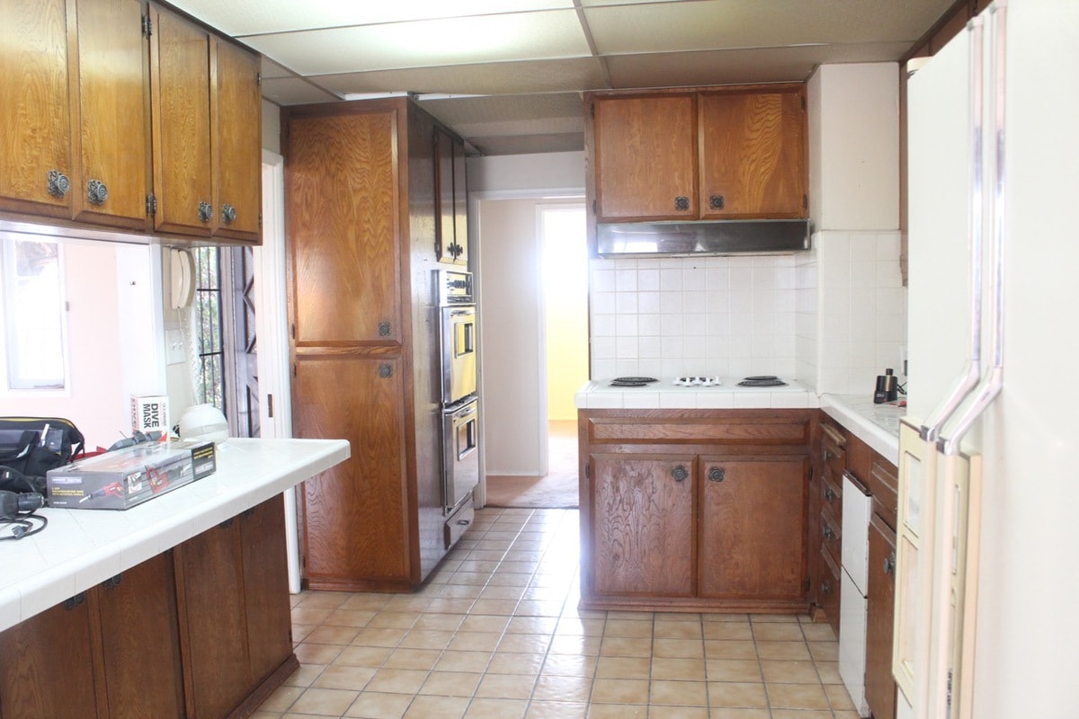 I would like it noted that what looks like a trash compactor to the left of the sink was literally just a door to nothing. Like, why? So many questions about this house before the remodel!