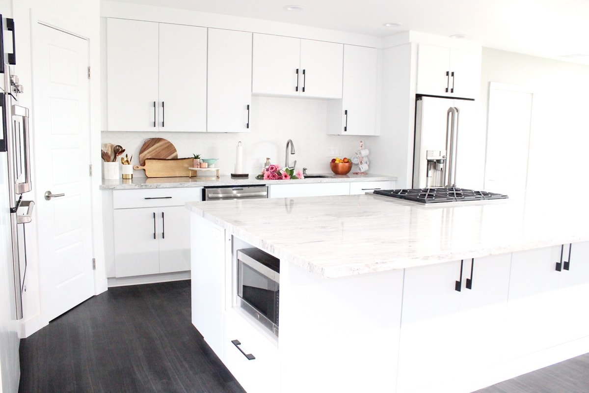 For the cabinet handles, I wanted something a little different than I’d seen before and I liked the idea of black instead of silver, so I went with these Modern Flat Black Cabinet Handles.